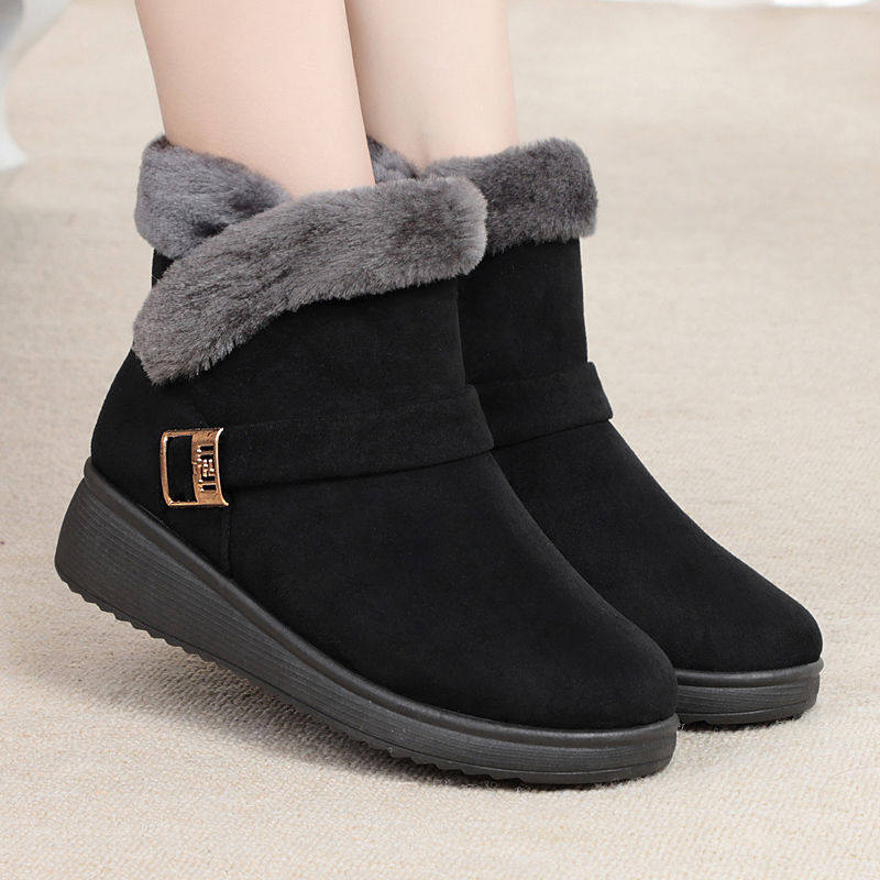 Winter Thickened Non-Slip Short Snow Boots for Women, Warm Mother's Cotton Boots, Fleece-Lined Women's Shoes, Cotton Shoes, Soft-Soled Short Boots