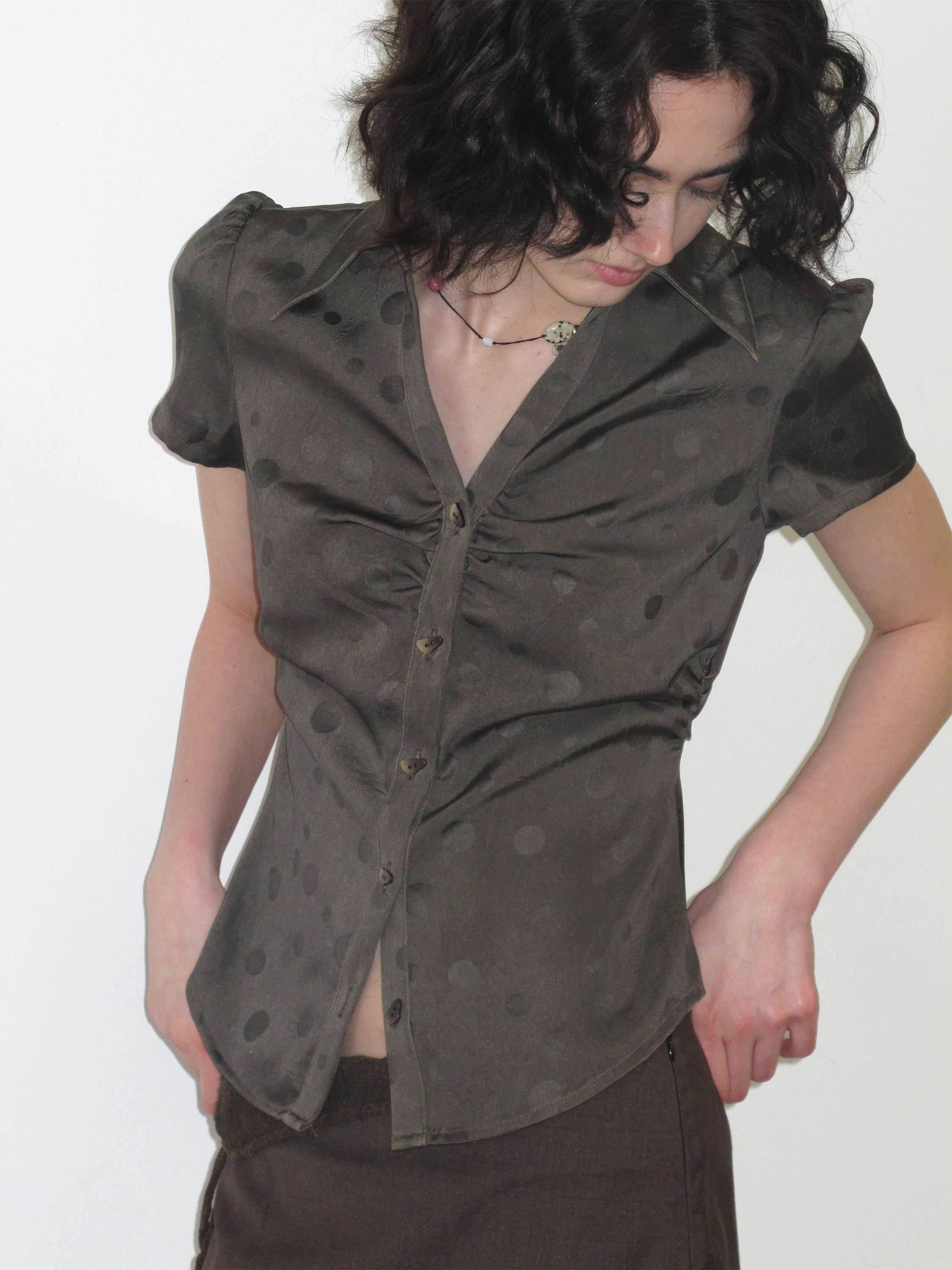 Mito De Dar Office Style V-Neck Polka Dot Waist-Cinching Urban Short-Sleeve Shirt