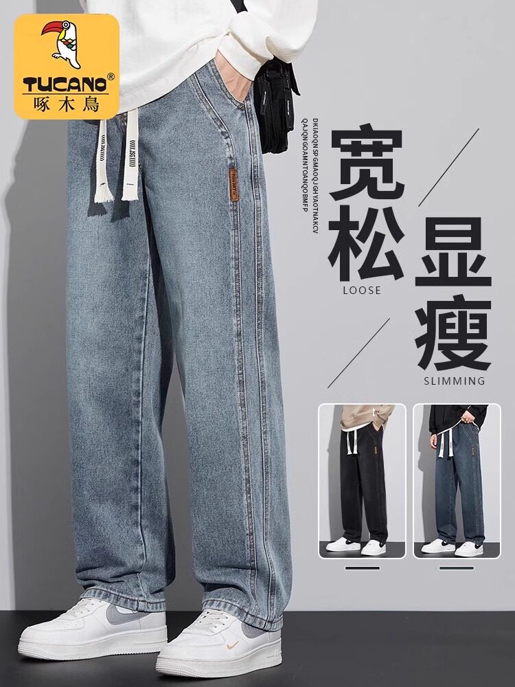 Woodpecker Spring and Summer New Loose Straight-Leg Jeans for Men, American High Street Workwear Wide-Leg Casual Long Pants