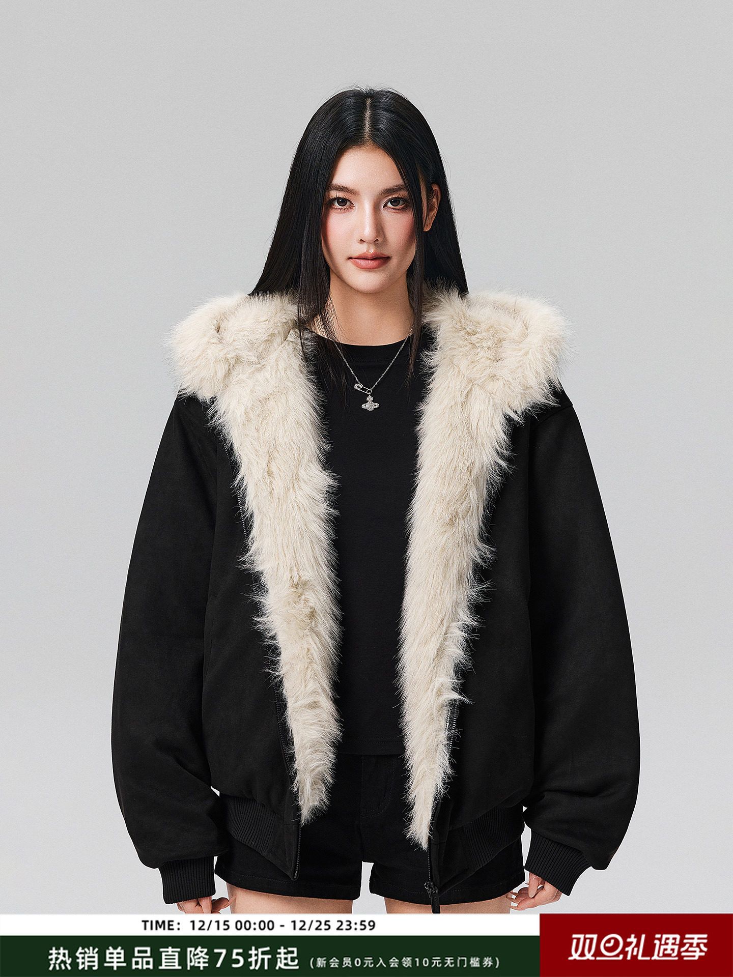 【Achock Official Store】Suede Thickened Warm Fur Collar Mountain Carving Cotton Jacket Heavy Cotton Coat Windproof Outerwear for Men