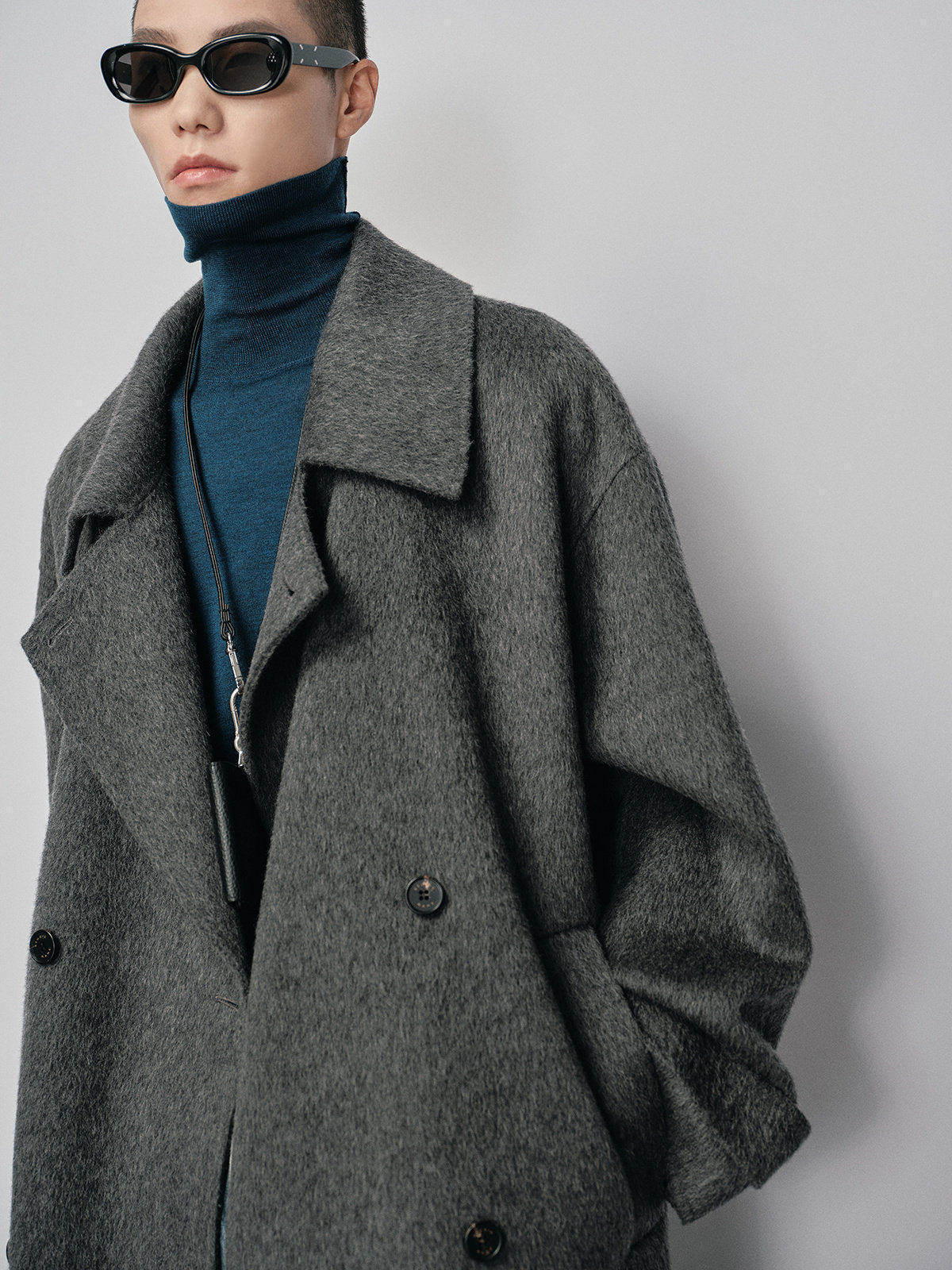 【Nans】Heavyweight Mixed-Color Loose-Fitting Woolen Coat with Classic Double-Breasted Small Lapel, Fully Wool, Handmade Double-Sided Woolen Coat