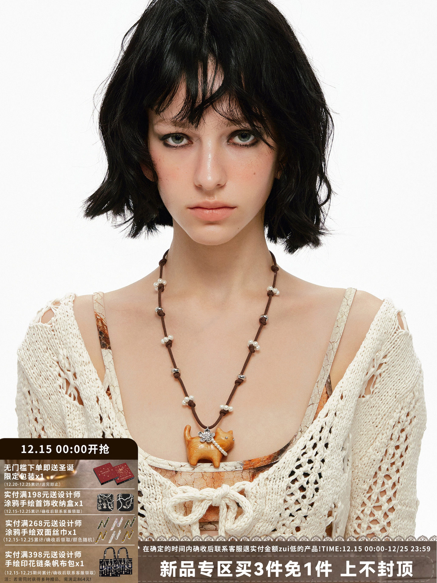Sumiyaki Kitten Pearl Braided Necklace Niche Design Sweater Chain Birthday Gift for Girls