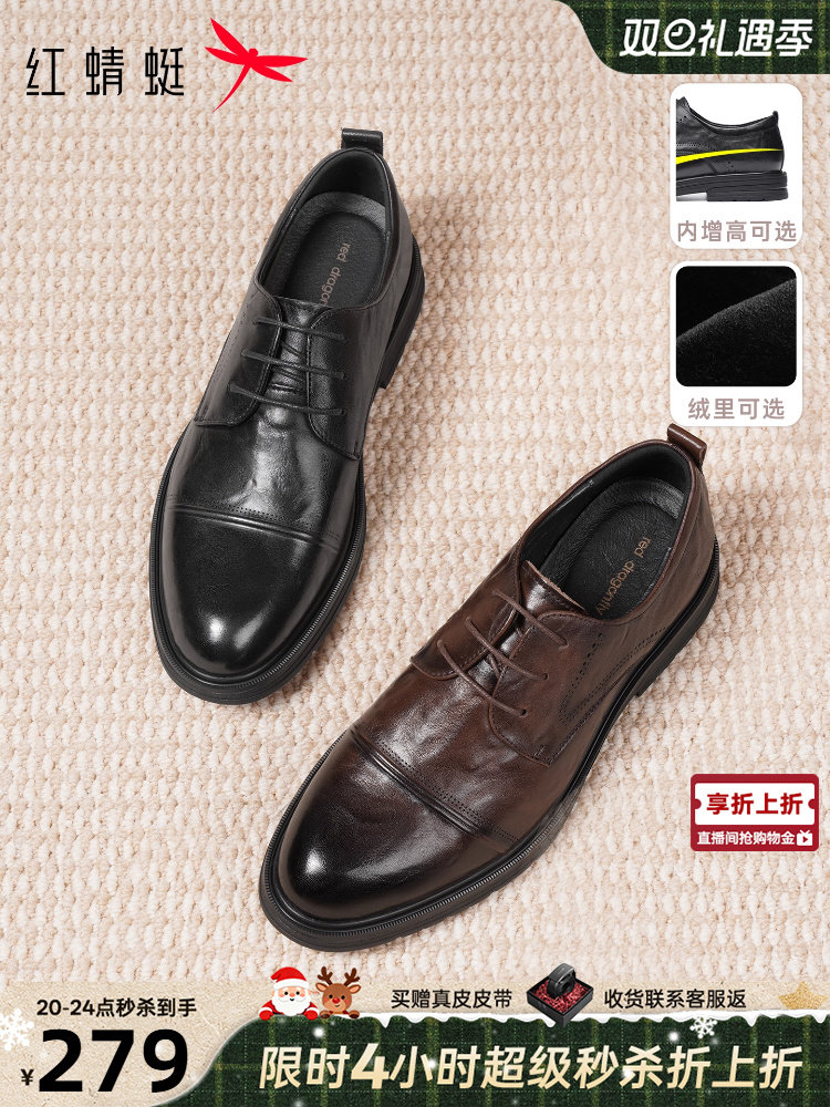 Red Dragonfly Men's Genuine Leather Shoes official store Men's Shoes Three-Strap Derby Large Size Wedding Groom Shoes