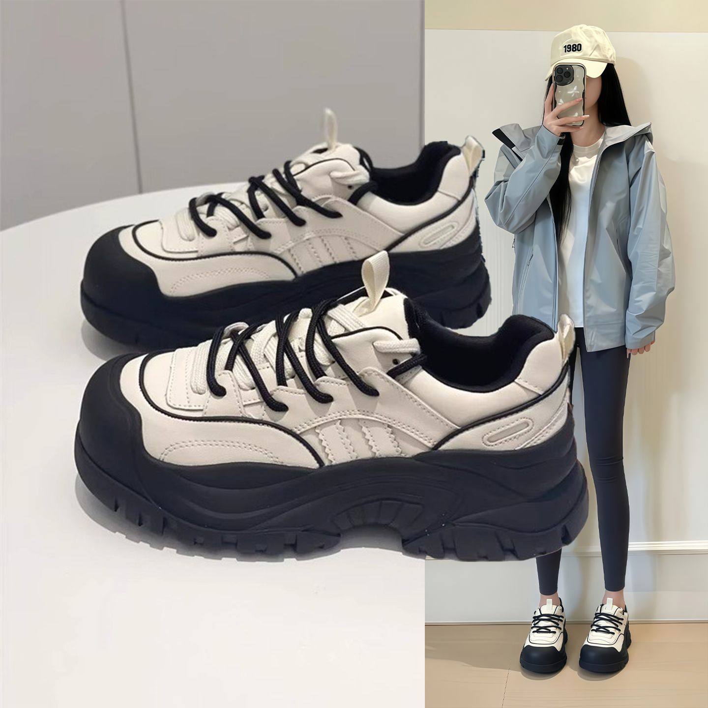 Hong Kong Genuine Leather Retro Dad Shoes for Women 2025 Spring and Autumn New Style Petite Thick-Soled Height-Increasing Versatile Casual Sneakers