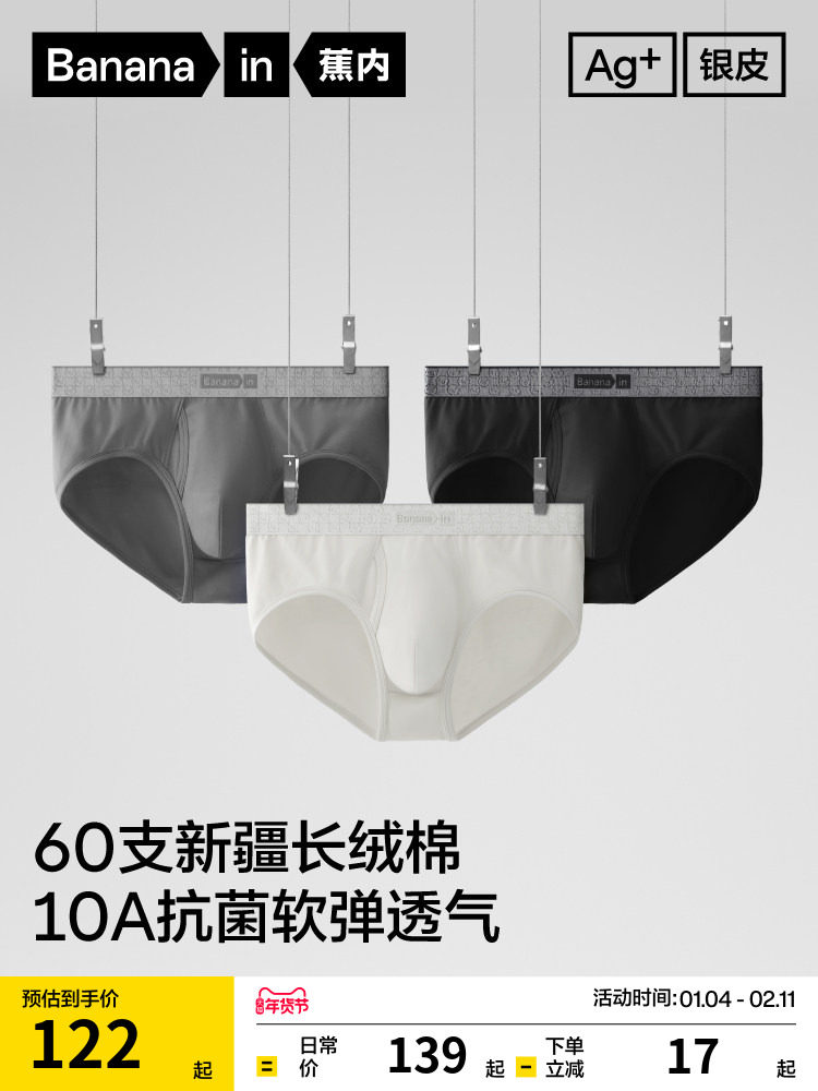 3 Pieces | Jiao Nei Yinpi 510S Men's Underwear Pure Cotton Breathable Crotch Briefs Winter Long-Staple Cotton Shorts Men's Underpants