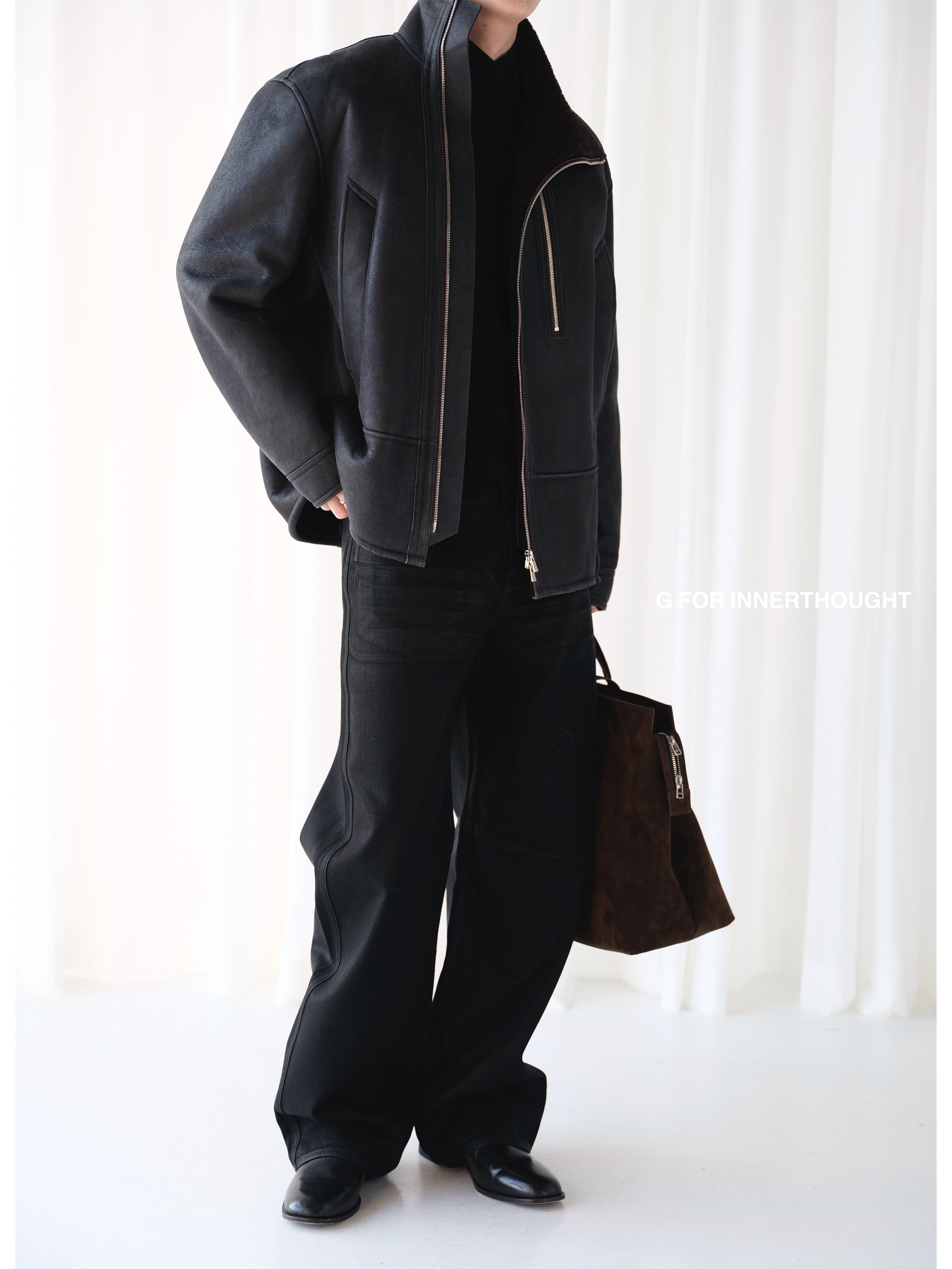 G for Innerthought Turkish Retro Oil Wax Double Zipper Sheepskin Leather Jacket