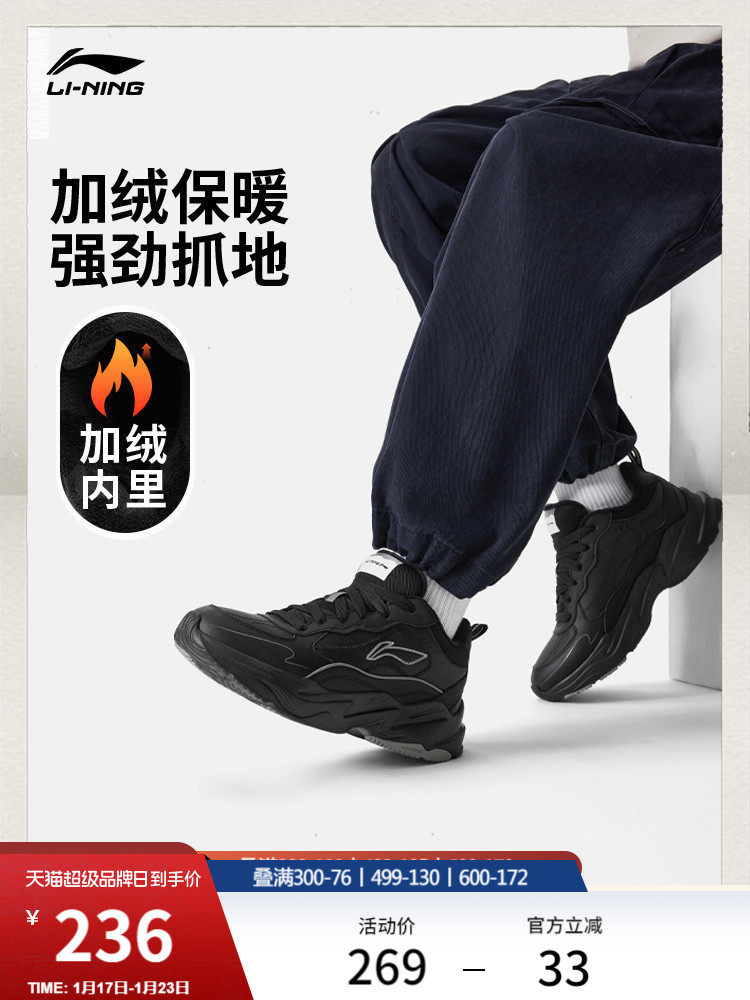 Li-Ning Ln Defender丨 Casual Shoes Men's Shoes Winter New Warm Cotton Shoes Black Fleece-Lined Sports Shoes