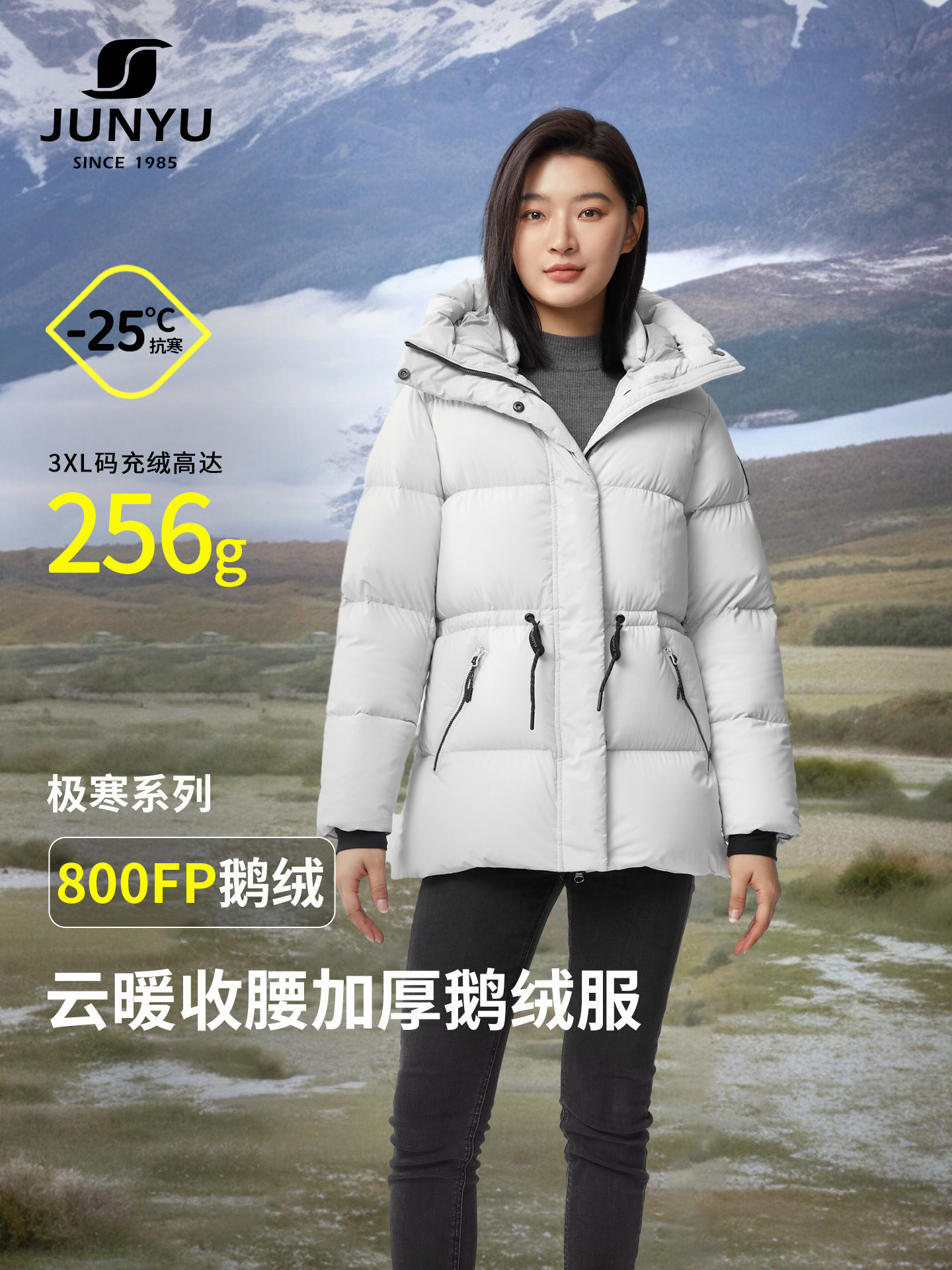 Junyu 800 Fill Power 95% White Goose down Jacket for Women, Mid-Length, Thickened, Winter Warm Hooded Women's down Jacket 198
