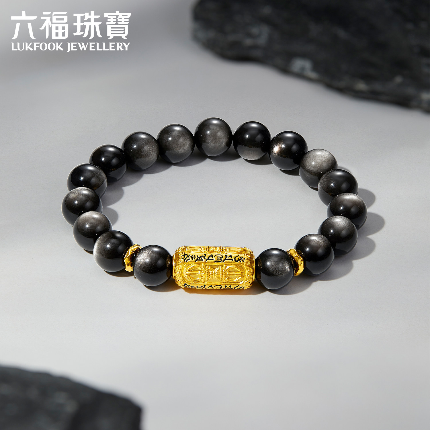 Liu Fu Jewelry Six-Word Mantra Gold Fortune Bead Bracelet Men's Vajra Obsidian Bracelet G38A0002Ds