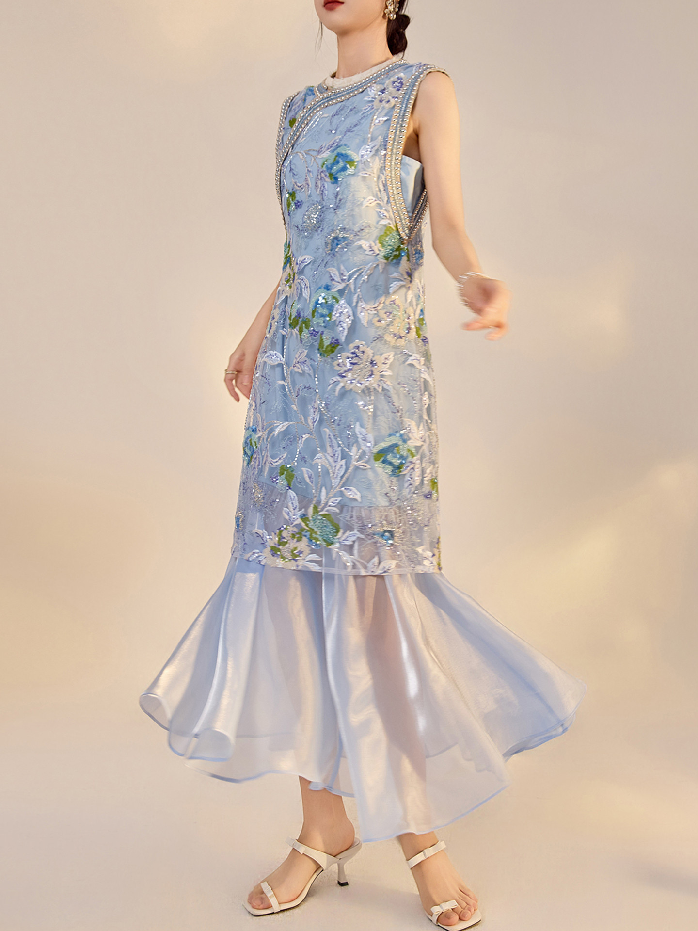 Ayomis New Chinese-Style Floral Heavy Sequin Embroidery with a Lustrous Feel, Patchwork Long Dress, 2025 Summer New National Style Dress