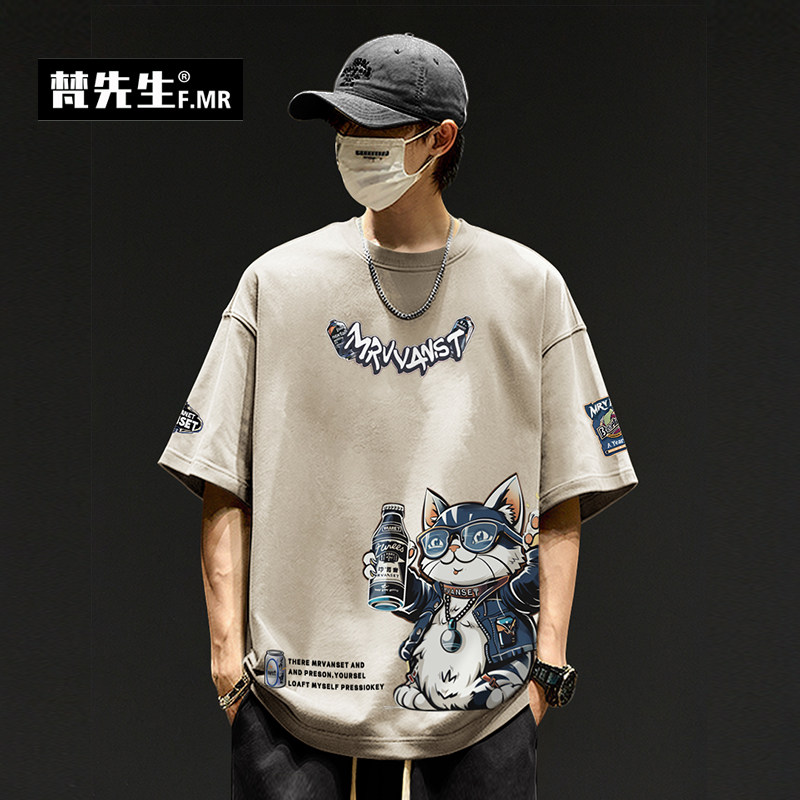 Mr. Vanset Summer Cool Short-Sleeve T-Shirt for Men, Trendy American Style, Vintage Loose Fit, Trendy Cartoon Design