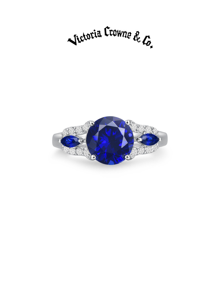 Victoria Crowne British Dynasty Sapphire Ruby Ring Sterling Silver Ring Light Luxury Birthday Gift