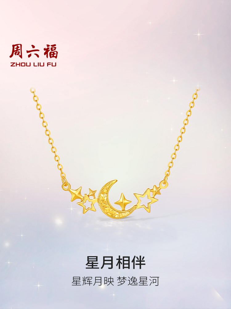 Saturday Fortune Gold Price: 5g Pure Gold Sparkling Star and Moon Necklace Romantic Starry Night Series Christmas Gift