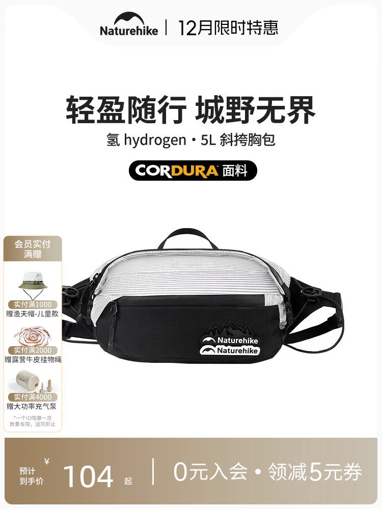 Naturehike Hydrogen Series 5L Crossbody Chest Bag Outdoor Casual Shoulder Bag Water-Repellent Cycling Waist Bag