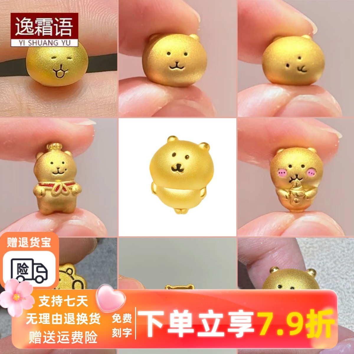 999 Gold Self-Deprecating Bear Pure Gold Transfer Bead Usachi 3D Hard Gold Bracelet/Chain Cute Expression Bear Gift for Girlfriend