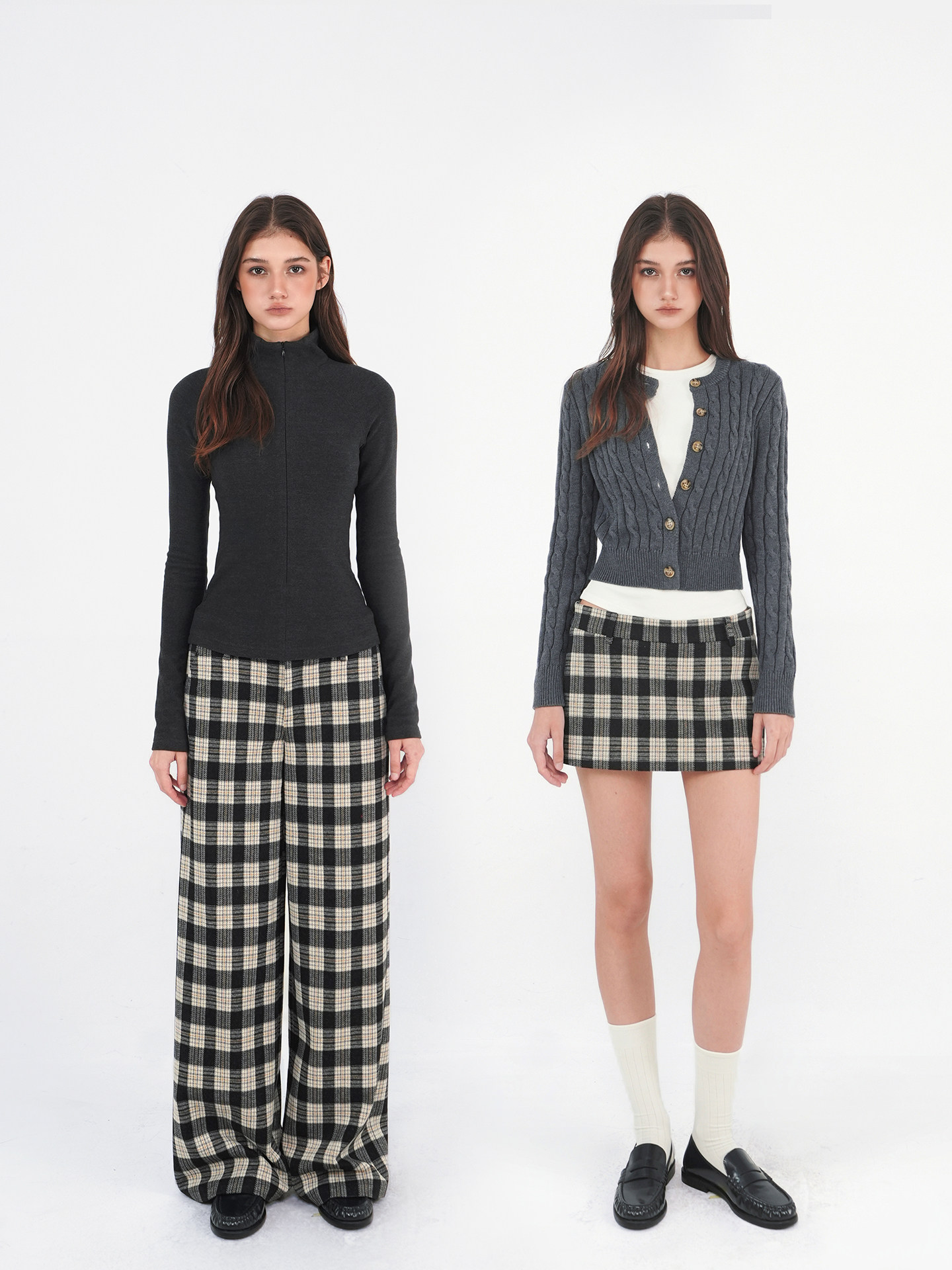 Jim Kennet Low-Waisted Retro Black and White Plaid Trousers Plaid Skirt