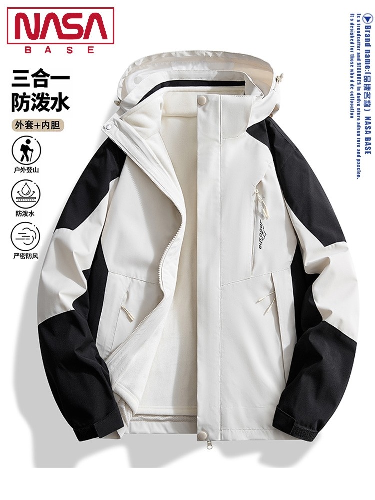 Nasa Outdoor Jacket for Men and Women, Autumn and Winter Windproof and Waterproof Couple's Three-In-One Detachable Mountaineering Jacket