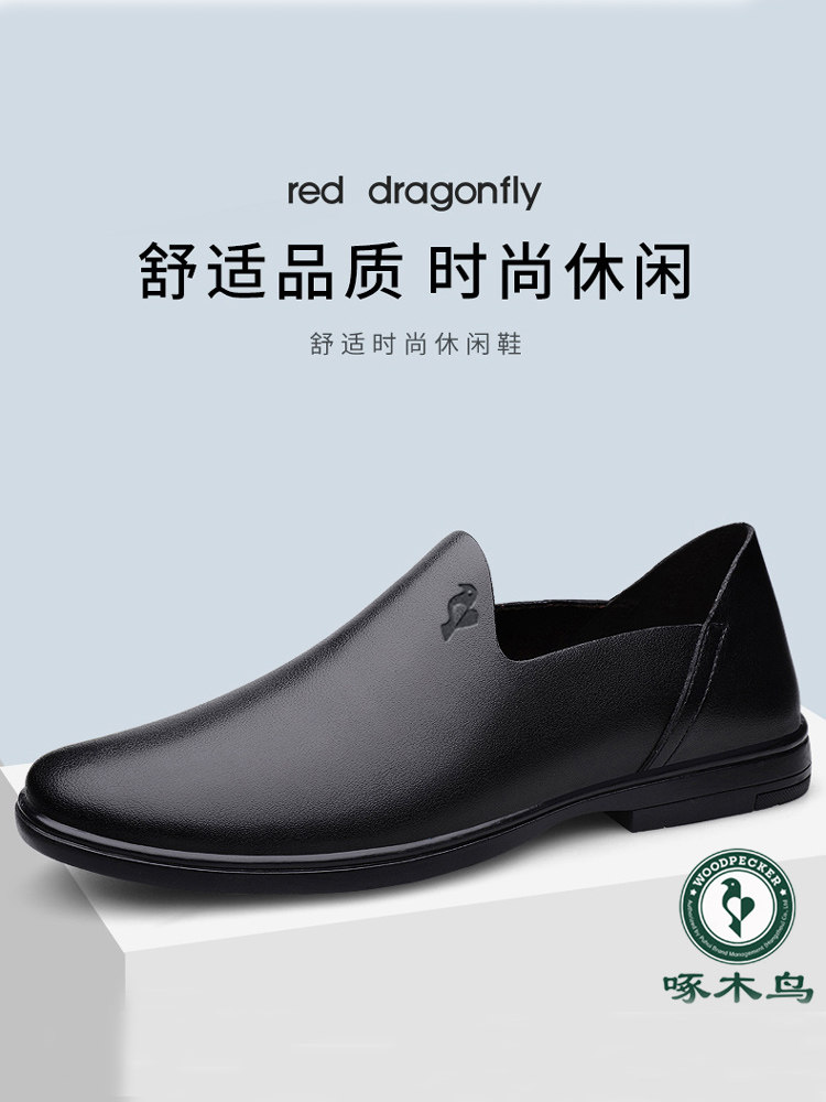 Woodpecker Men's Shoes Summer Genuine Leather Breathable Loafers Men's British Style Trendy Soft Sole Slip-On Casual Single-Layer Leather Shoes