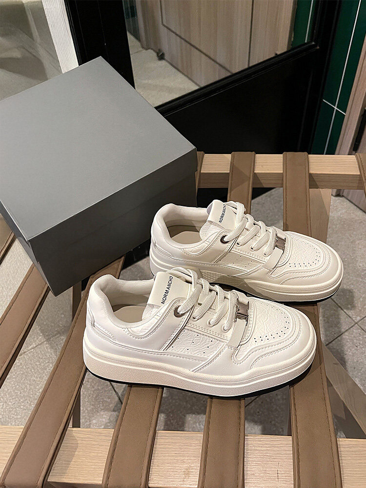 Hong Kong Thick-Soled Genuine Leather Height-Increasing White Sneakers for Women 2025 Spring and Autumn Versatile Casual Comfortable Breathable Sneakers Sports Shoes