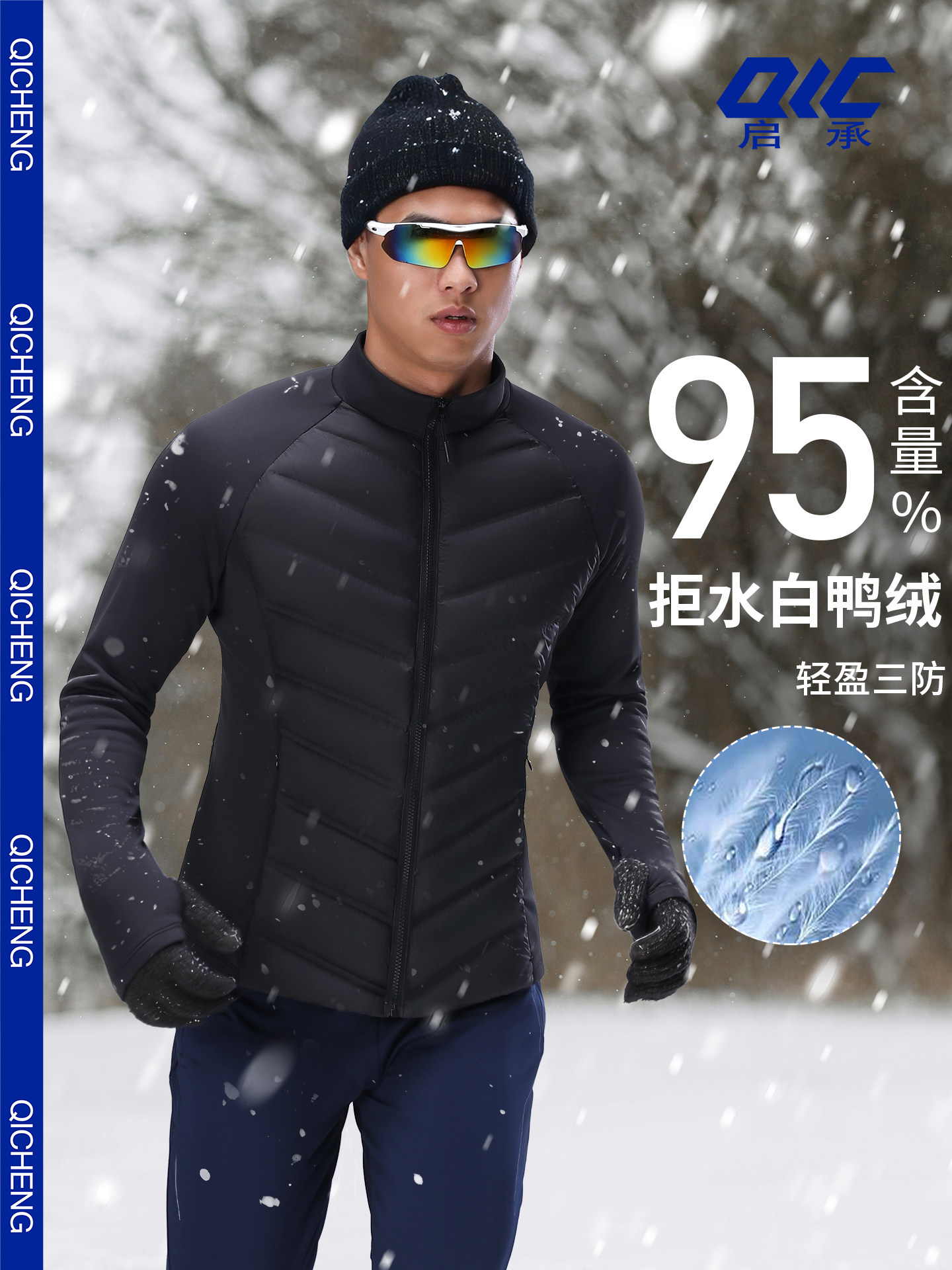 Qicheng 800Fp 95% White Duck down Jacket Men's Running Ribbed Jacket Sports Skiing Windbreaker Inner Liner