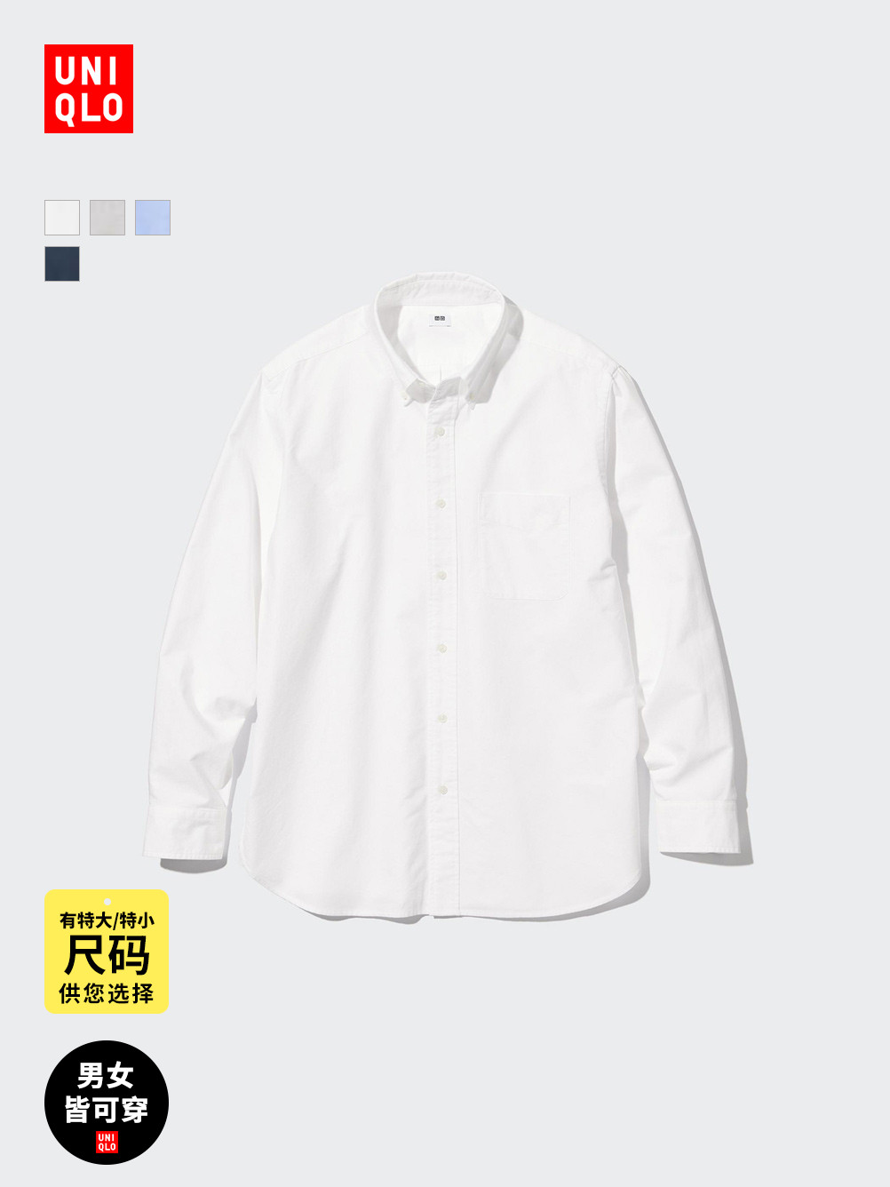 Uniqlo Men's and Women's Oxford Fabric Shirts Long-Sleeved Shirts Casual Solid Color Casual Commuting 478086 475998