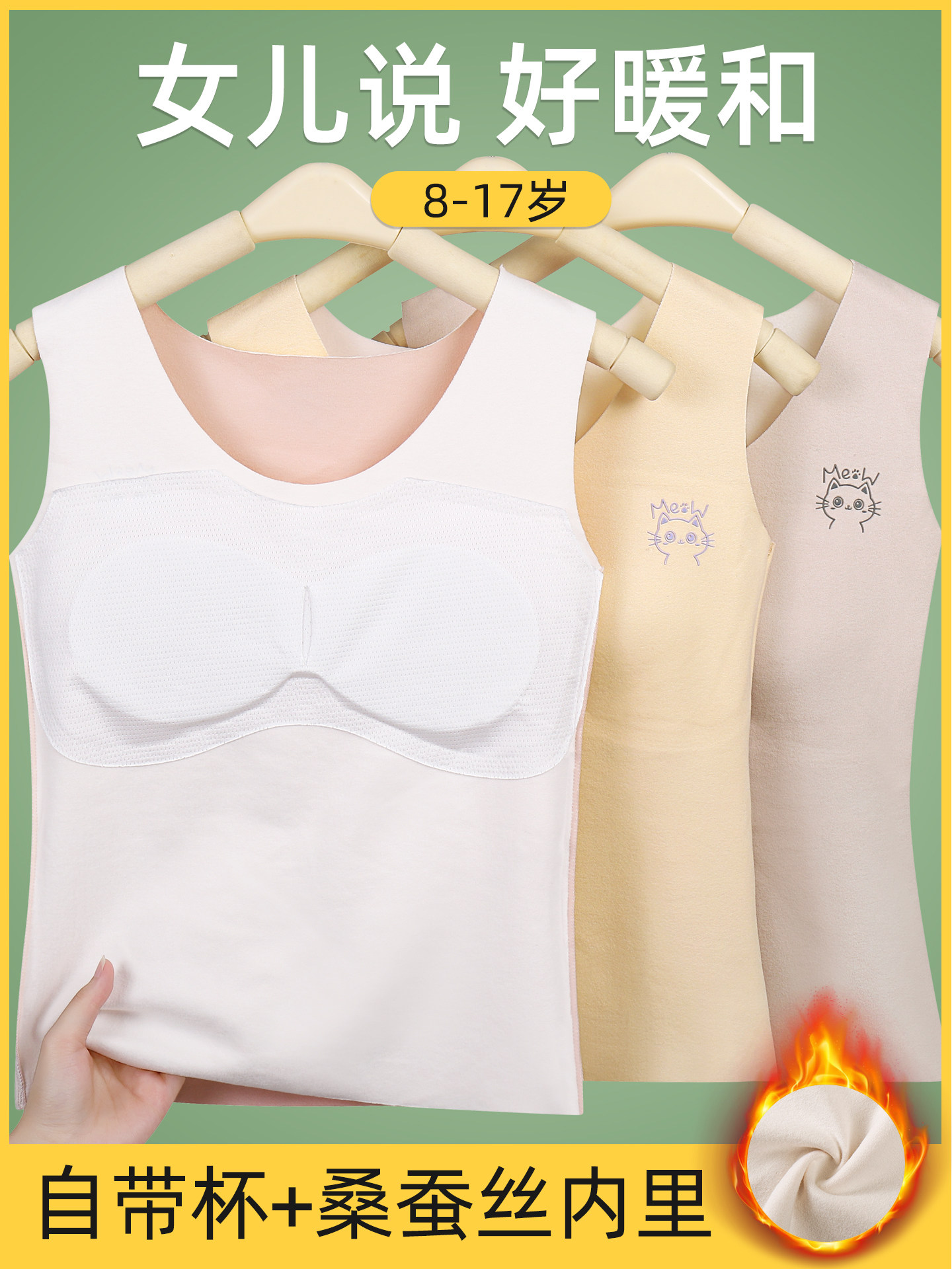 Girls' Thermal Vest, Silk Belly Protection, Developmental Period Girls' Underwear, Primary School Students' Inner Wear for the Second and Third Stages, Autumn and Winter