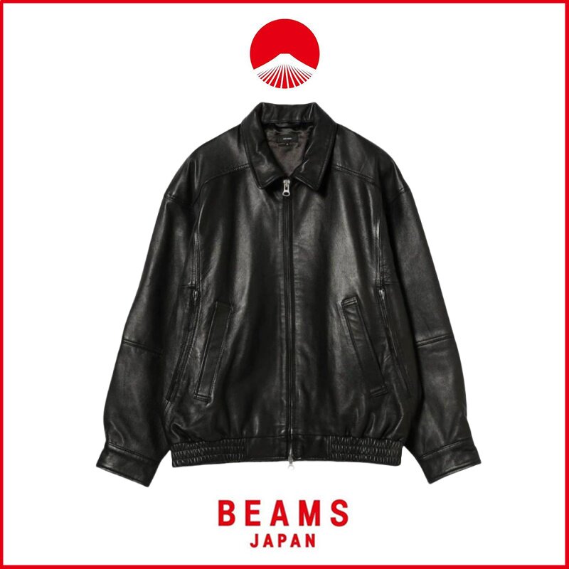 【In Stock 50% off 】Beams Lambskin Pu25Ss Loose American Retro Casual Biker Leather Jacket with Zipper