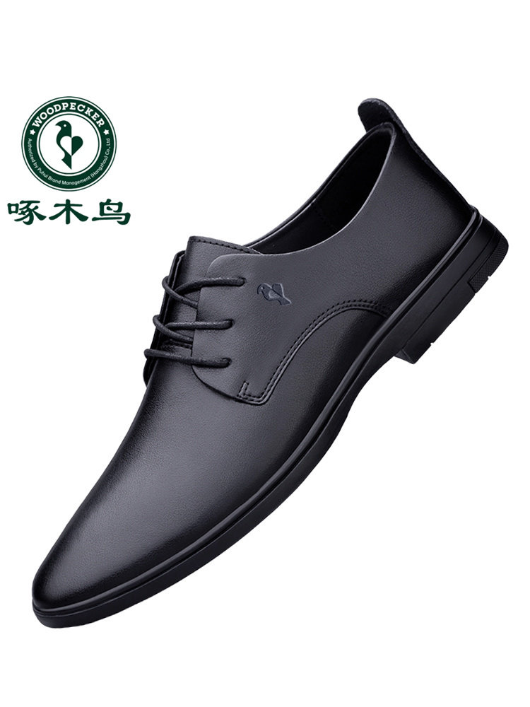 Woodpecker Men's Shoes Genuine Leather Breathable Formal Business Casual Leather Shoes Men's Lace-Up Black Soft Sole Non-Slip Work Shoes