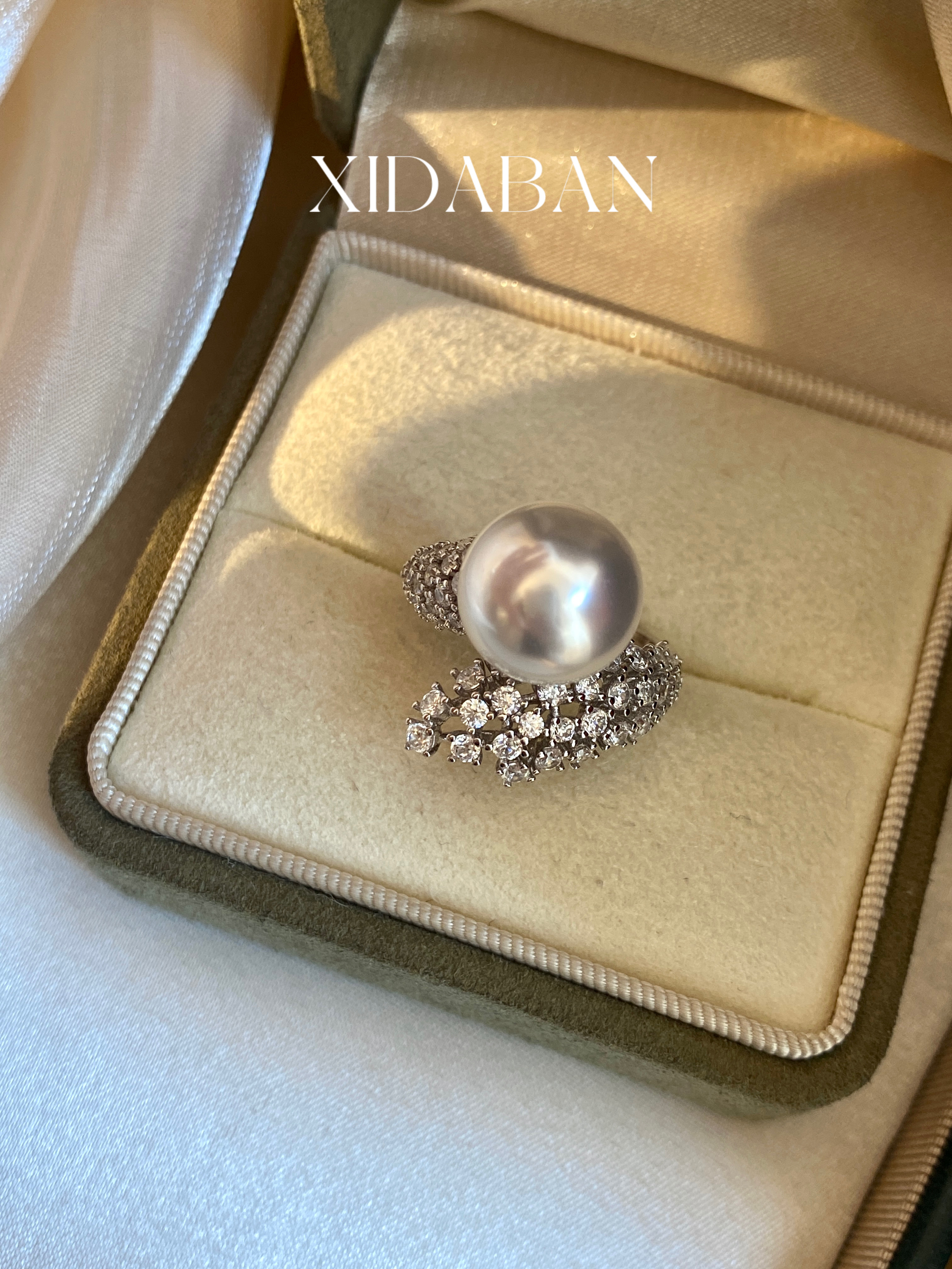 All-Over S925 Sterling Silver Snake-Shaped Zircon Ring with Artificial Australian White Pearl, French Light Luxury High-End Open Ring