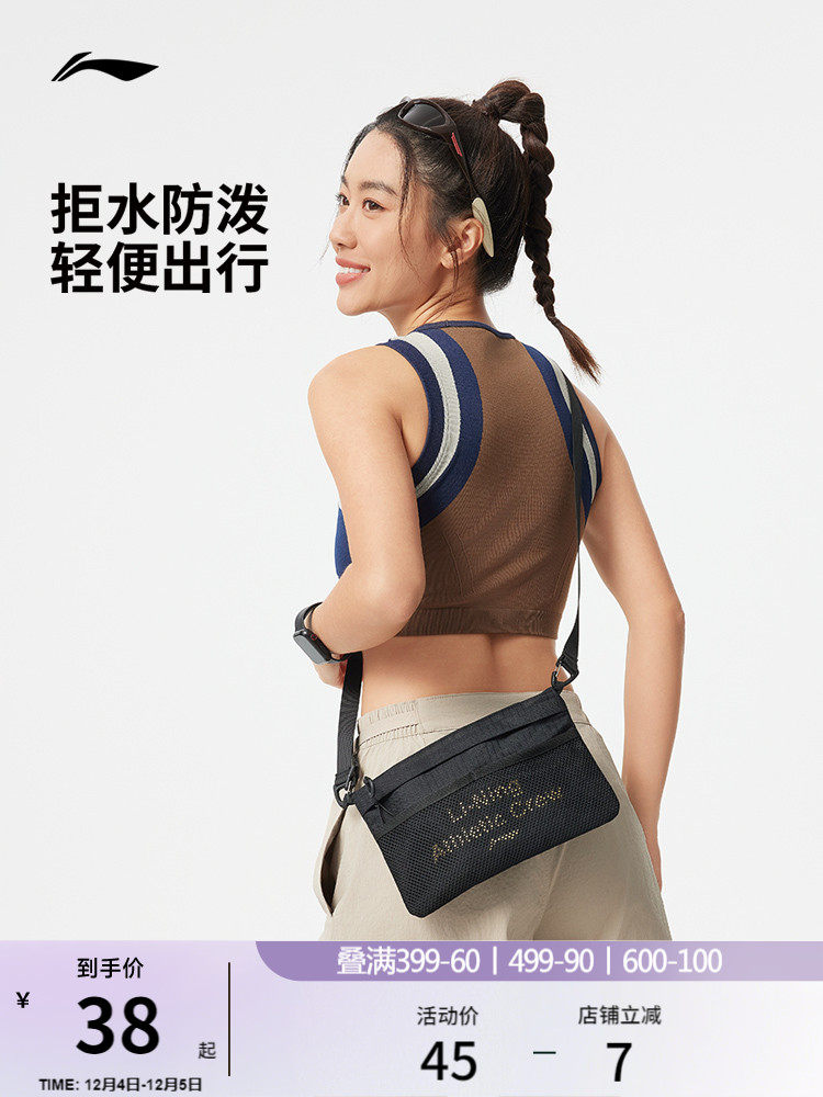 Li-Ning Crossbody Bag for Men and Women, Official Flagship Store Genuine Product, Outdoor Fitness Series, Water-Repellent, Casual, Versatile Sports Bag
