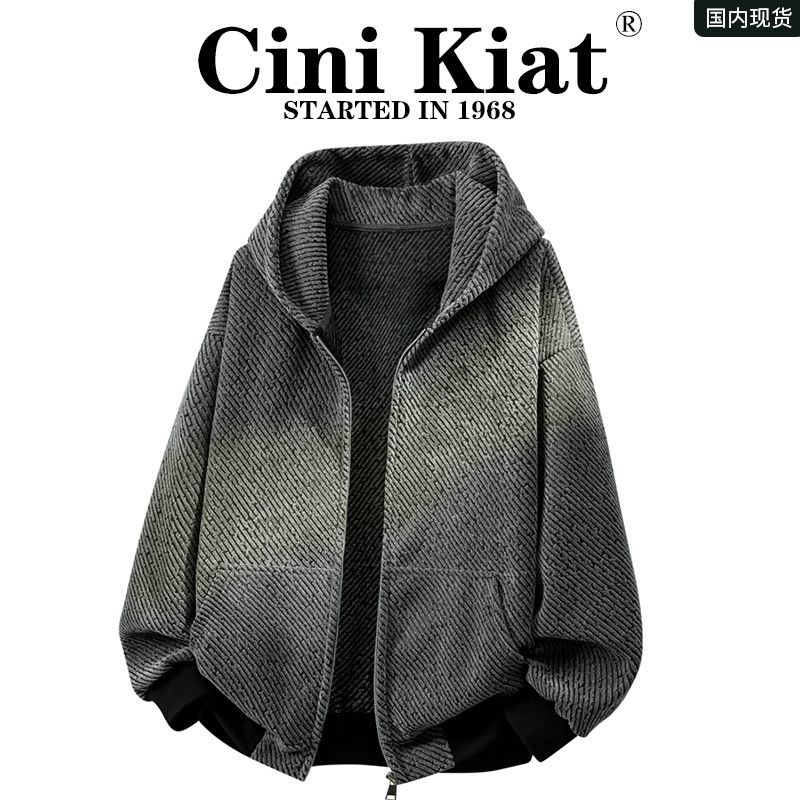 Cini Kiat Small Fragrance Style Knitted Striped Sweatshirt Jacket for Men, Spring American Retro Heavyweight Hooded Cardigan Jacket 1
