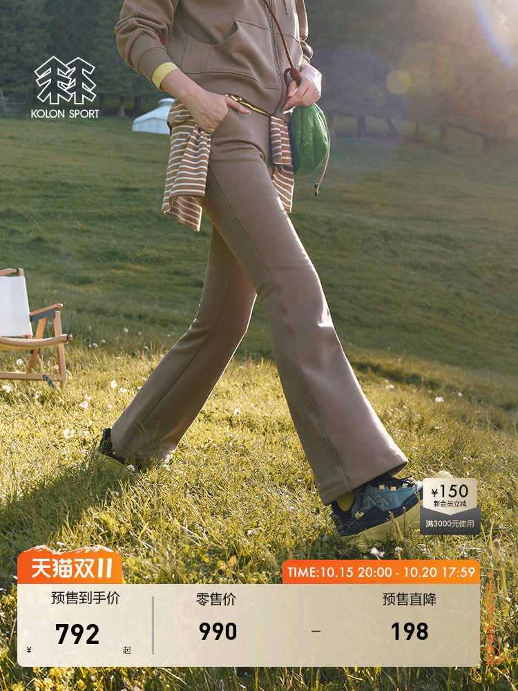 【 】Kolon Outdoor Casual Pants for Women, Fleece-Lined Knitted Long Pants, Lightweight Flared Pants