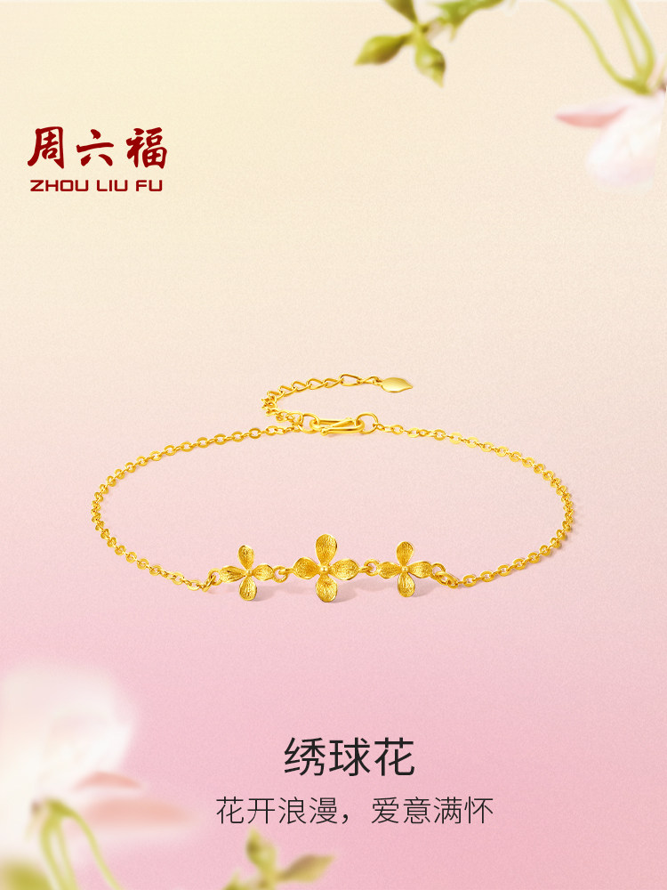 Saturday Fortune Gold Hydrangea Bracelet for Women, Floral Collection, Pure Gold, Wedding Three Gold Gifts, Gift for Girlfriend, New Year Gift