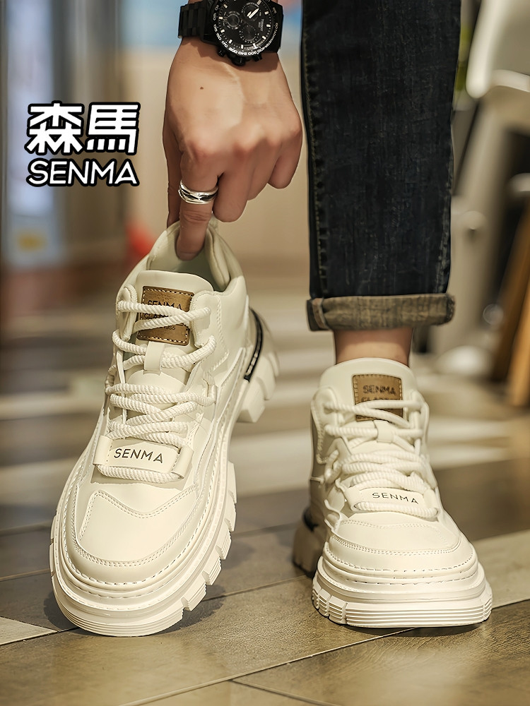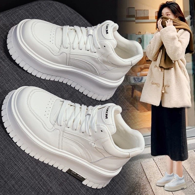 Hong Kong Fashion High-Top Shoes for Women 2025 Spring and Autumn New Style Fleece-Lined Versatile Genuine Leather Sports Casual Thick-Soled Sneakers