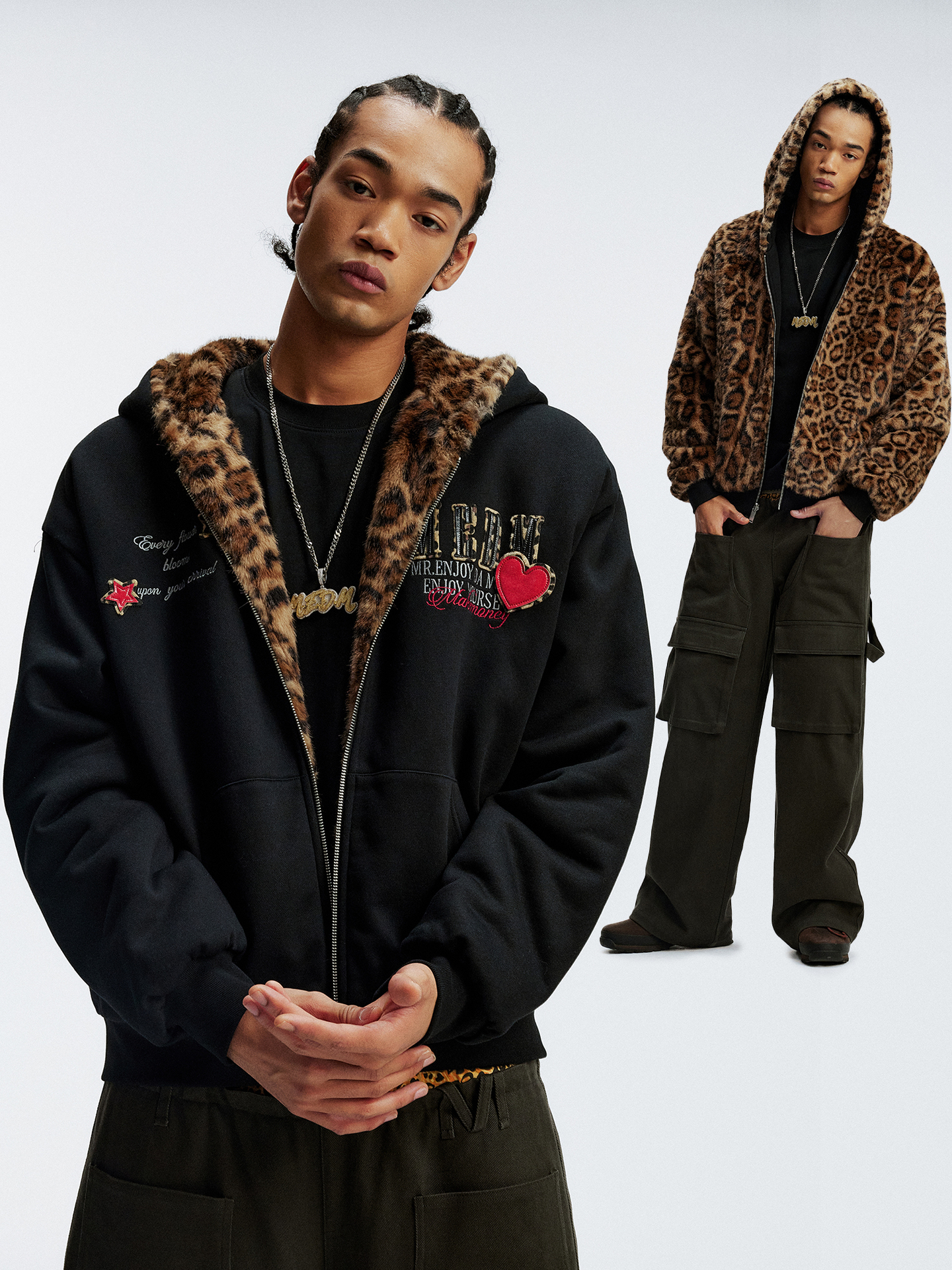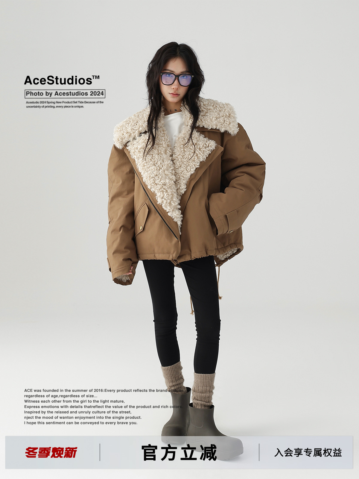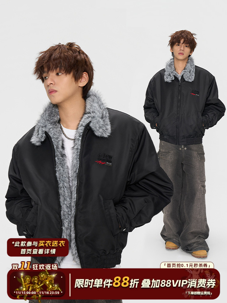 Afgk25Fw American-Style Faux Mink Fur Winter Stand-Up Collar Jacket with Mountain Carving, Cotton-Padded, Fleece-Lined, Thickened Coat for Men and Women