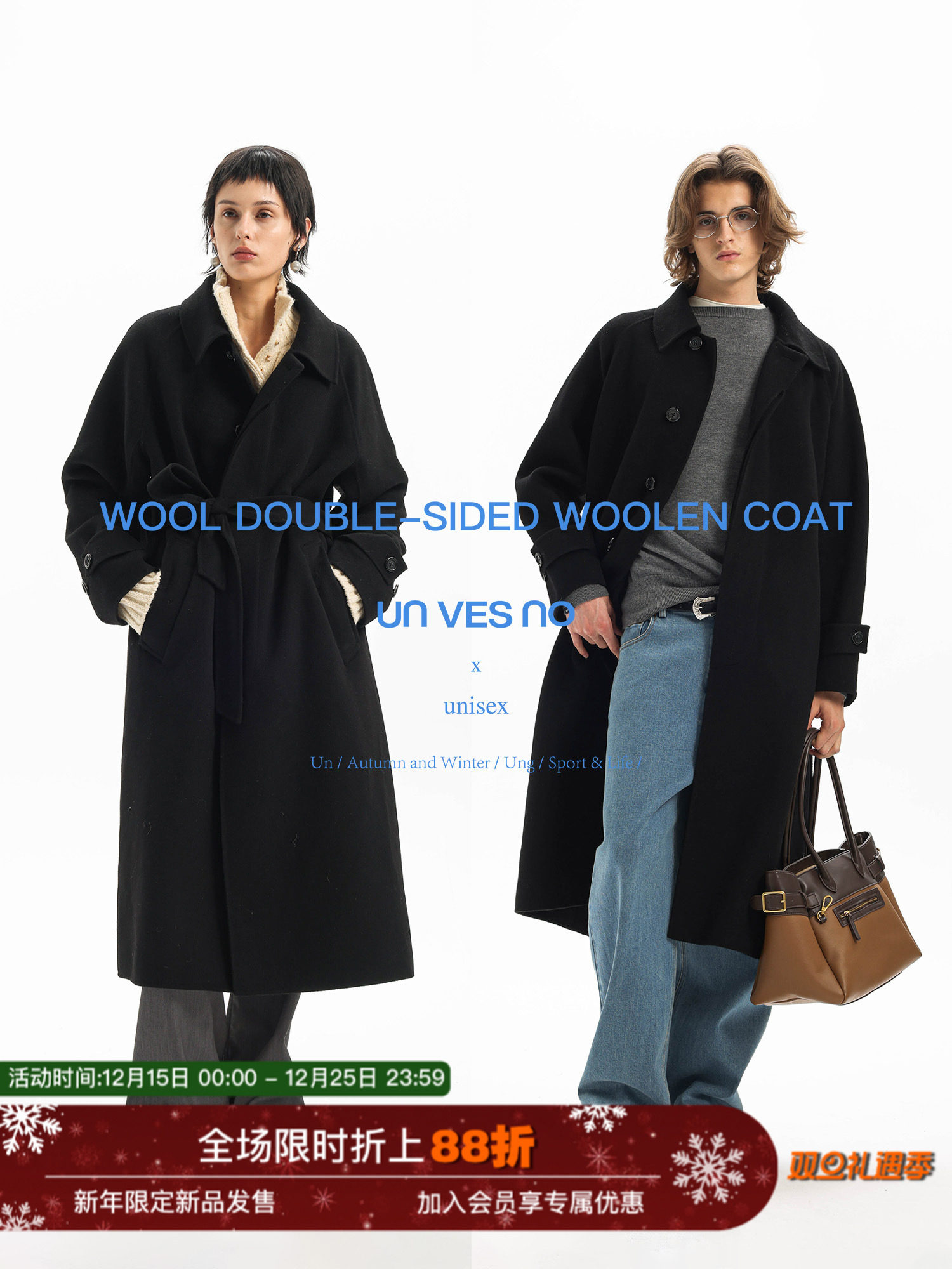 【100% Australian Wool】Unvesno (Un) Autumn Warm Handmade Gentleman's Double-Sided Wool Coat with Turn-Down Collar and Windbreaker Style