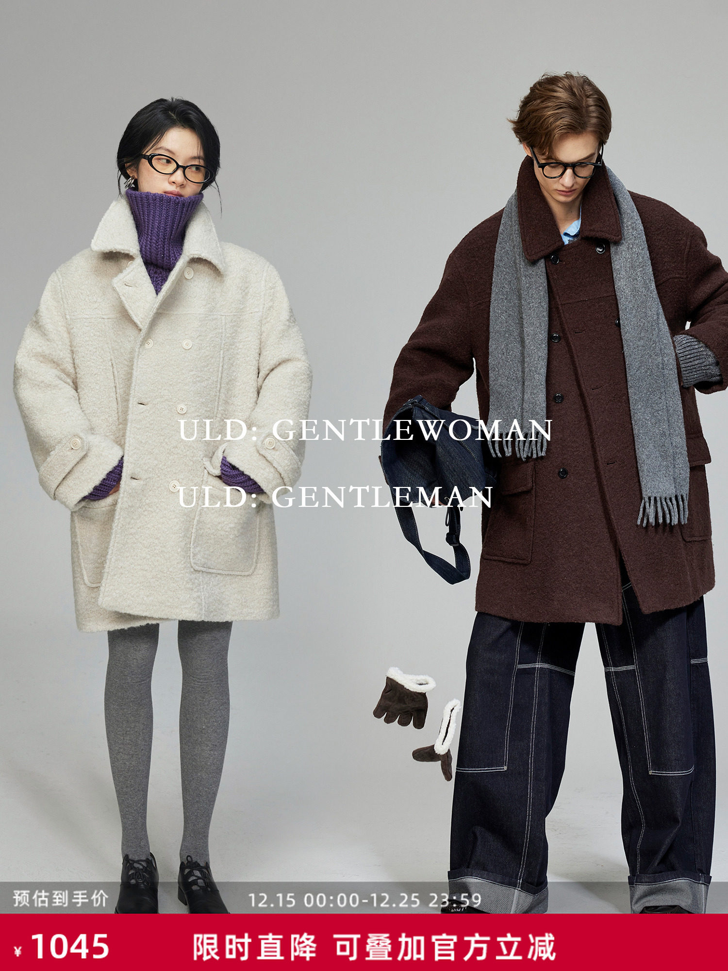 Uld/Snowflake Circle Texture Double-Breasted Wool Coat for Women, Mid-Length 2024 Winter Lapel Woolen Jacket for Men