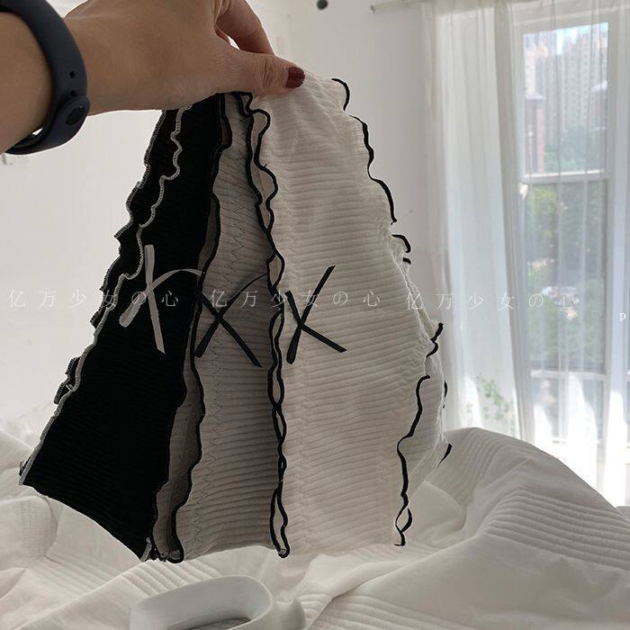 Minimalist Style Girl's Underwear, Pure Cotton, Antibacterial, Student, Sexy and Charming, Mid-Low Waist, Japanese Style, Black and White Briefs