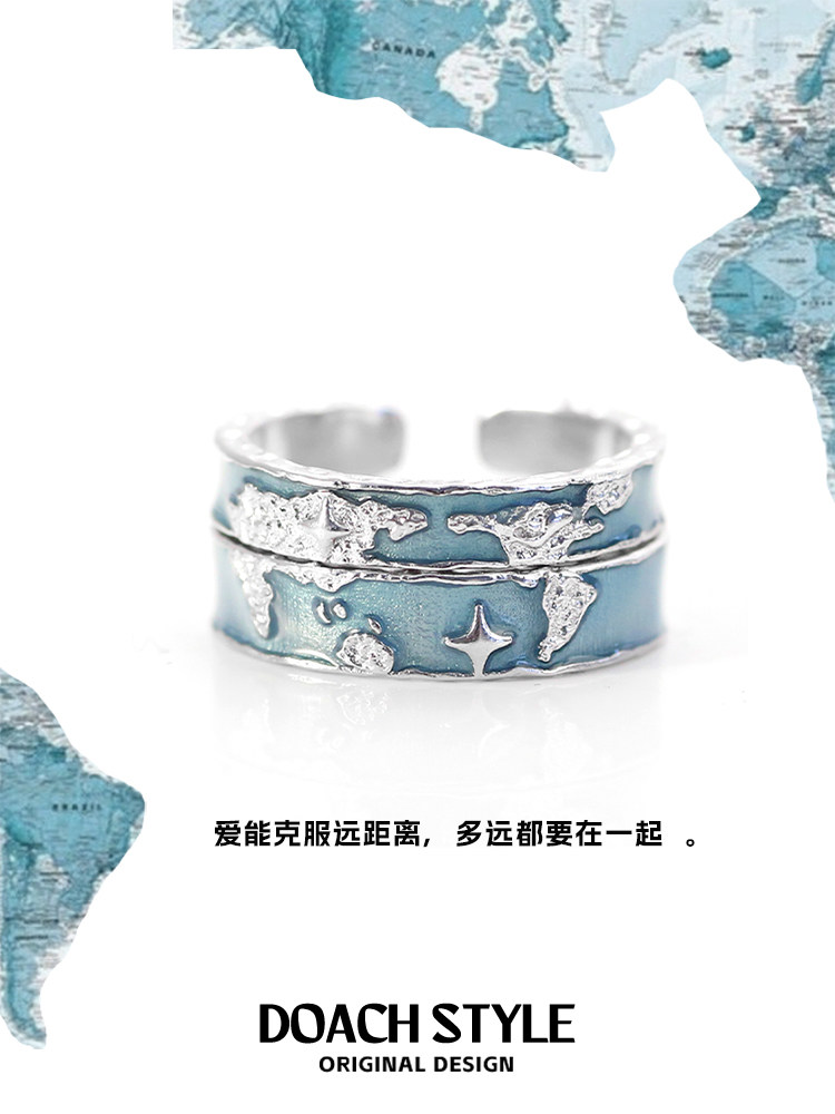Perfect World Map 925 Sterling Silver Couple Rings, Personalized and Fashionable Birthday Gifts, High-End Couple Rings