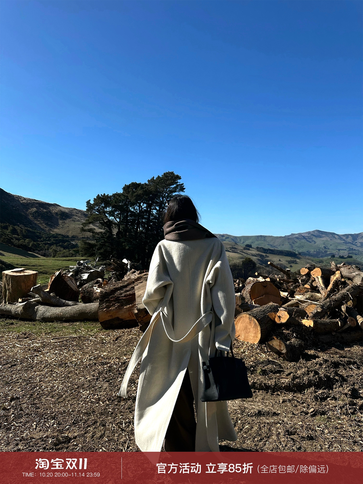 0122Stepll Original Pastoral Style Off-White Wool Coat for Tall Women, Long Double-Sided Woolen Waist-Cinching Coat