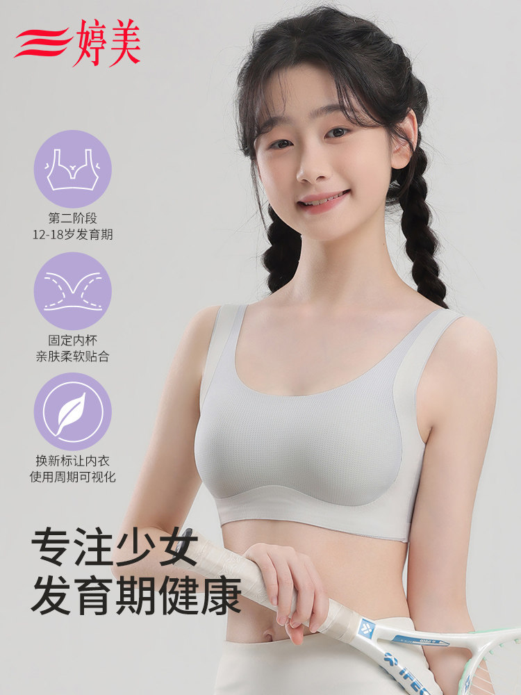 Tingmei Thin Bra for Girls in the Second and Third Stages of Development, Early Development Period, High School Students, Sports Vest Style, Shock-Proof Girls' Underwear
