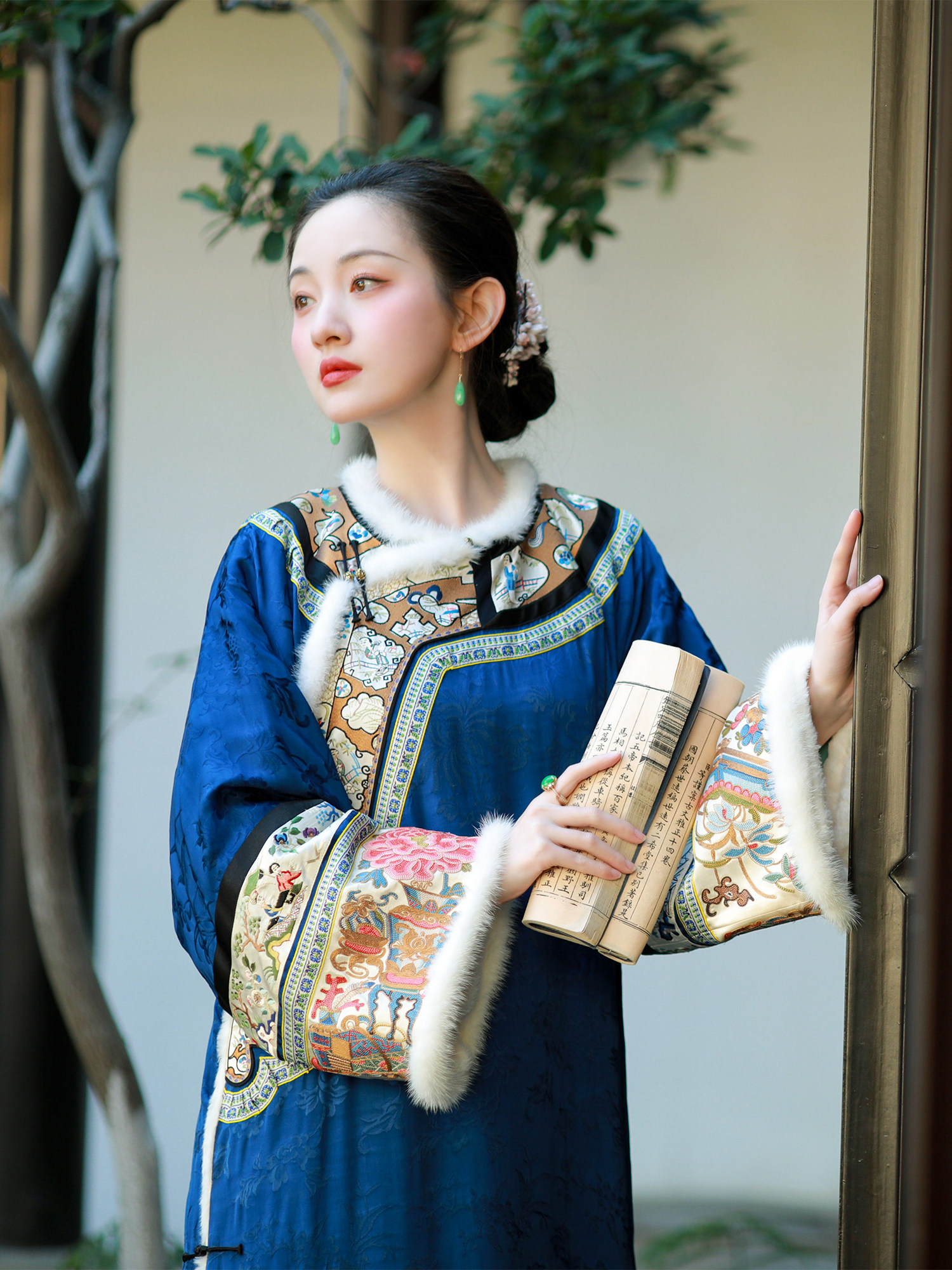 Flowing Fireflies at Night | 2025 Winter New Collection | Heavy Gold Embroidery with Ruyi Border, Round Neck Mink Fur Trim Cloak