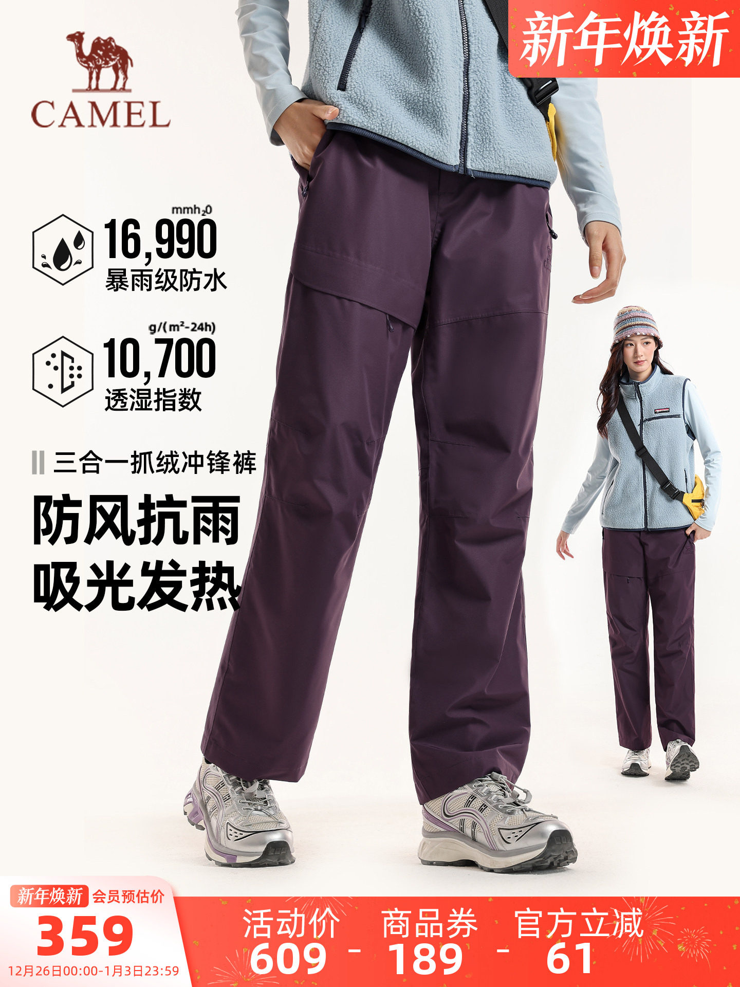 Camel Outdoor Hiking Pants for Women, 3-in-1 Fleece Lining, 2025 Autumn and Winter Waterproof, Windproof, Snowproof Trekking and Mountaineering Pants for Men