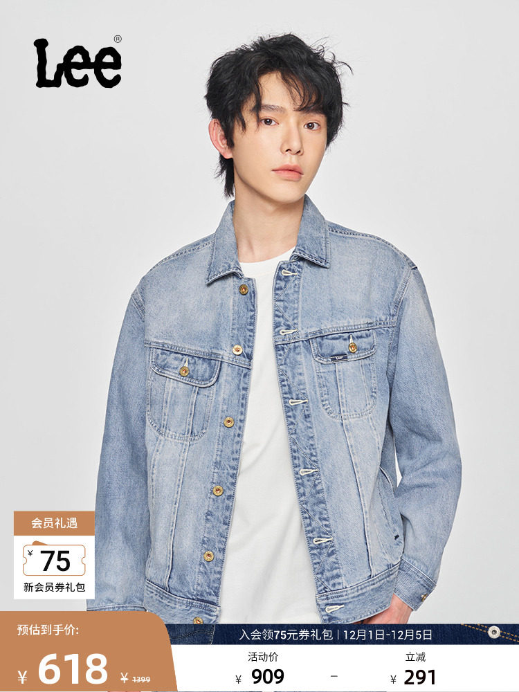 Lee Mall Same Style 25 New Product Comfortable Version Lapel 101+ Light Blue Men's Denim Jacket Casual Trendy