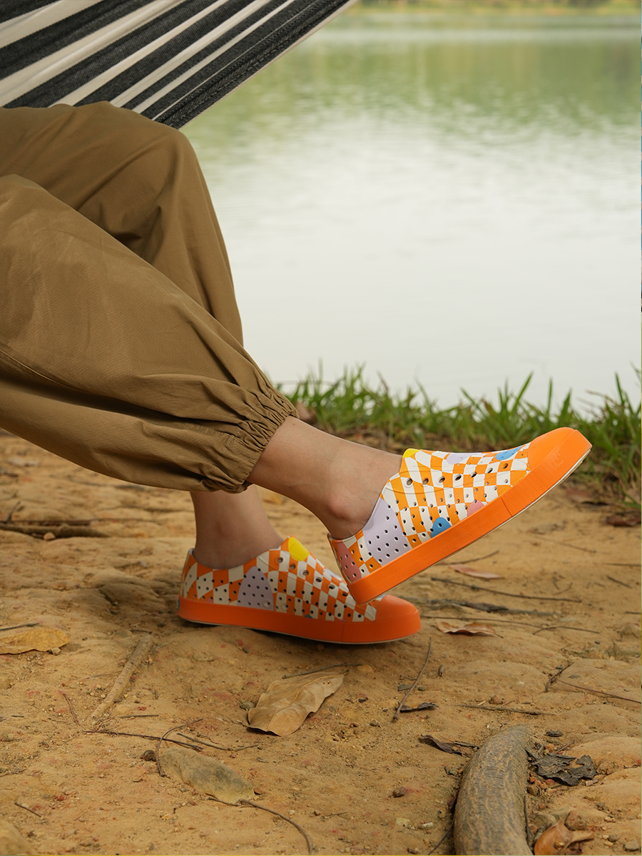 Native Jefferson Checkerboard Perforated Shoes, Fashionable Closed-Toe Breathable Beach Shoes, Casual Flat Sandals