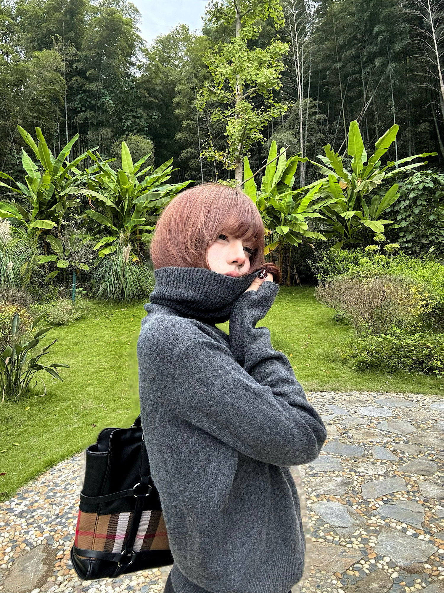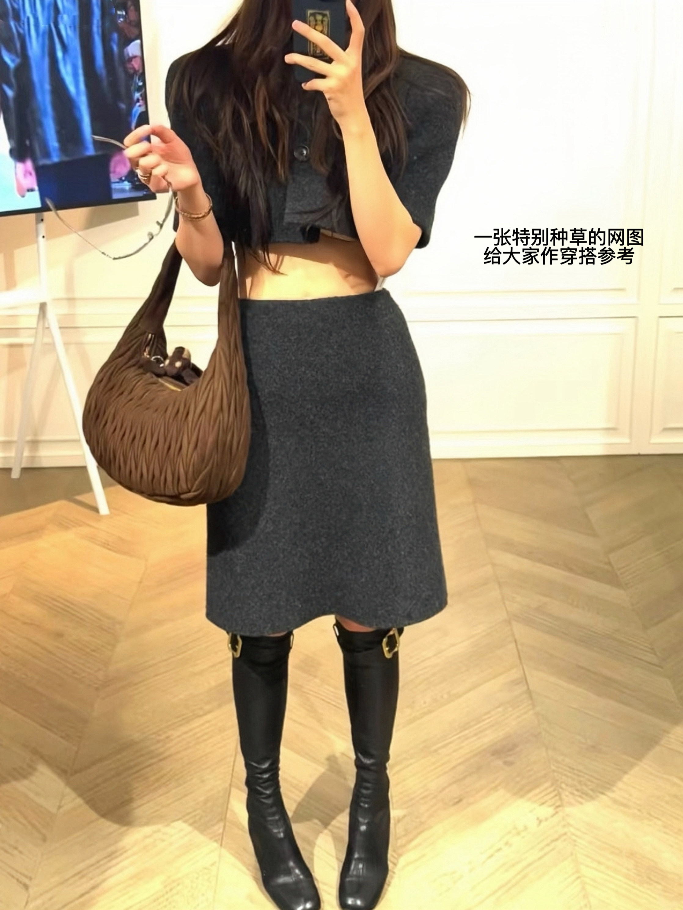 Chicyou's Mid-Length Skirt in Gray Wool with a Slit in the Back, Stylish and Intellectual for Autumn and Winter