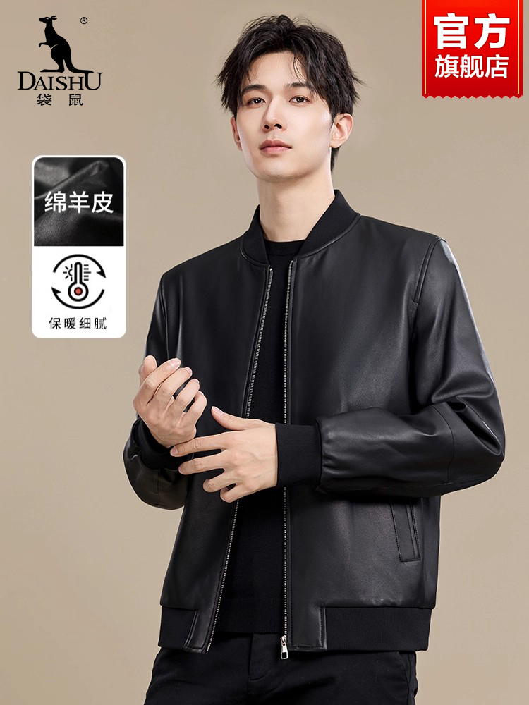 Kangaroo Leather Haining Leather Jacket Men's Short Baseball Jacket 2025 Autumn and Winter New First-Layer Sheepskin Coat