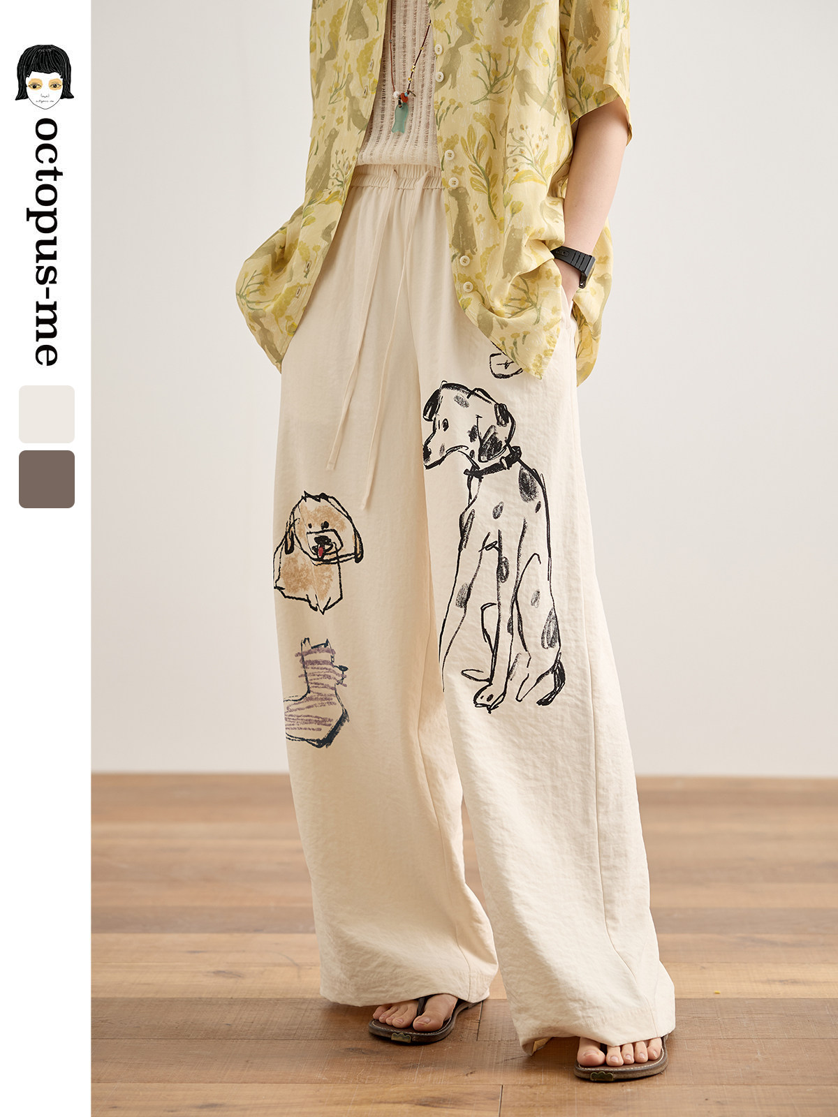Octopusme Octopus Print Loose Casual Pants Yamamoto Pants White Lazy Relaxed Wide-Leg Pants Long Pants