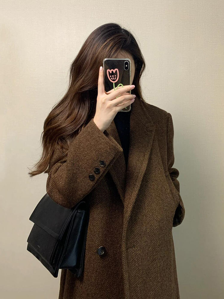 Plaid Woolen Coat for Petite Women 2024 New Winter High-End Hepburn Style Suit Shoulder-Length Woolen Coat