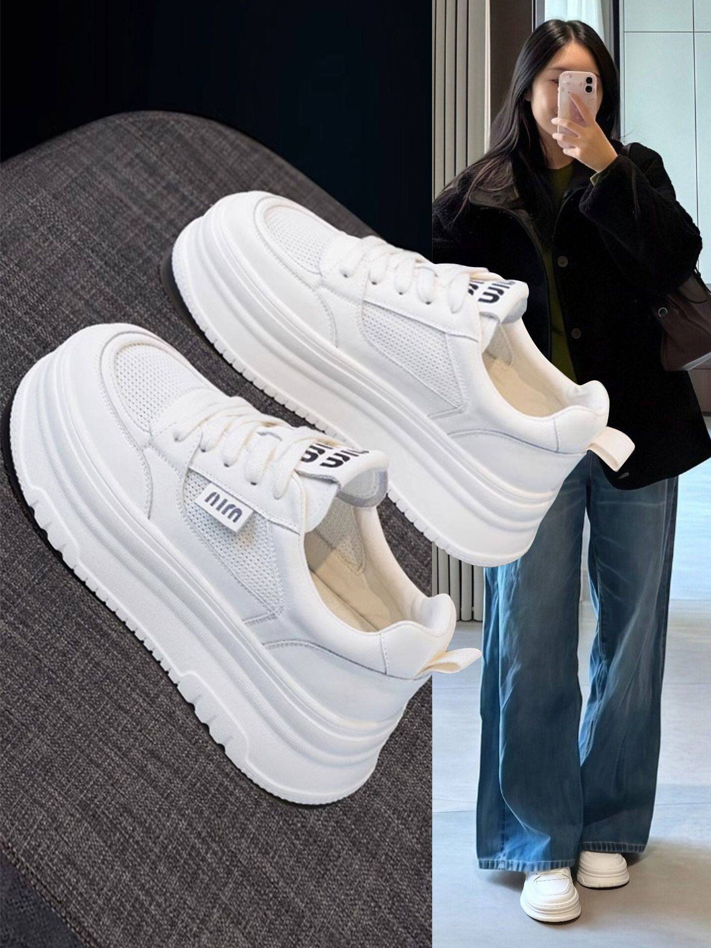Hong Kong Breathable Thick-Soled White Sneakers for Women 2025 Spring and Autumn New Style Elegant Mesh Casual Height-Increasing Sneakers for Petite Individuals